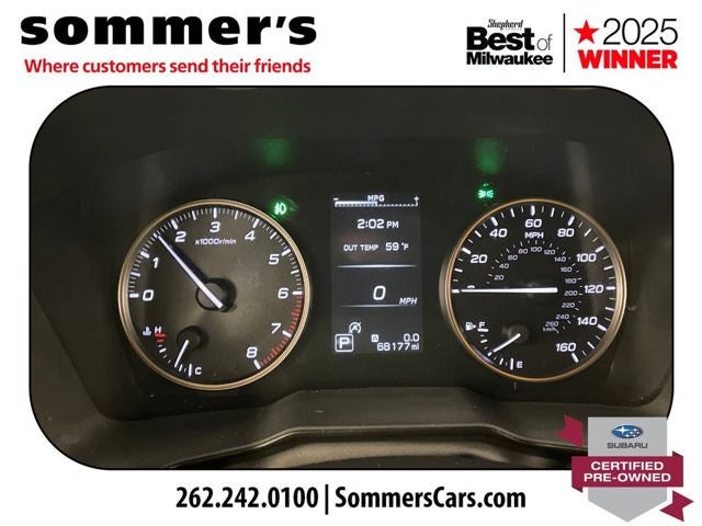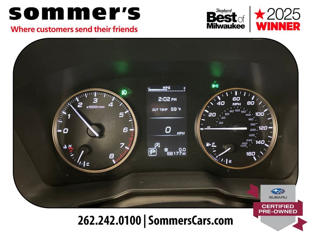 The 2.4L turbocharged H-4 and CVT deliver strong everyday power with smooth response. Full-time AWD and all-terrain tires add confident traction on changing road surfaces.