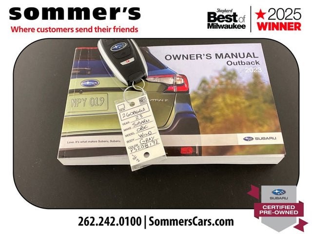 Find this 2023 Subaru Outback Wilderness at Sommer's Automotive in Mequon, just north of Milwaukee serving Wisconsin drivers from Cedarburg, Grafton, Port Washington, Shorewood, Whitefish Bay, Fox Point, Bayside, Glendale, Wauwatosa, Brookfield, West Bend, Menomonee Falls, Germantown, Sussex, Hartford, Oconomowoc, Pewaukee, New Berlin, Franklin, Oak Creek, Racine, Kenosha, Muskego, Mukwonago, Hales Corners, Cudahy, South Milwaukee, and many more communities throughout the greater Milwaukee, Ozaukee County, Washington County, Waukesha County, and southeastern Wisconsin area.