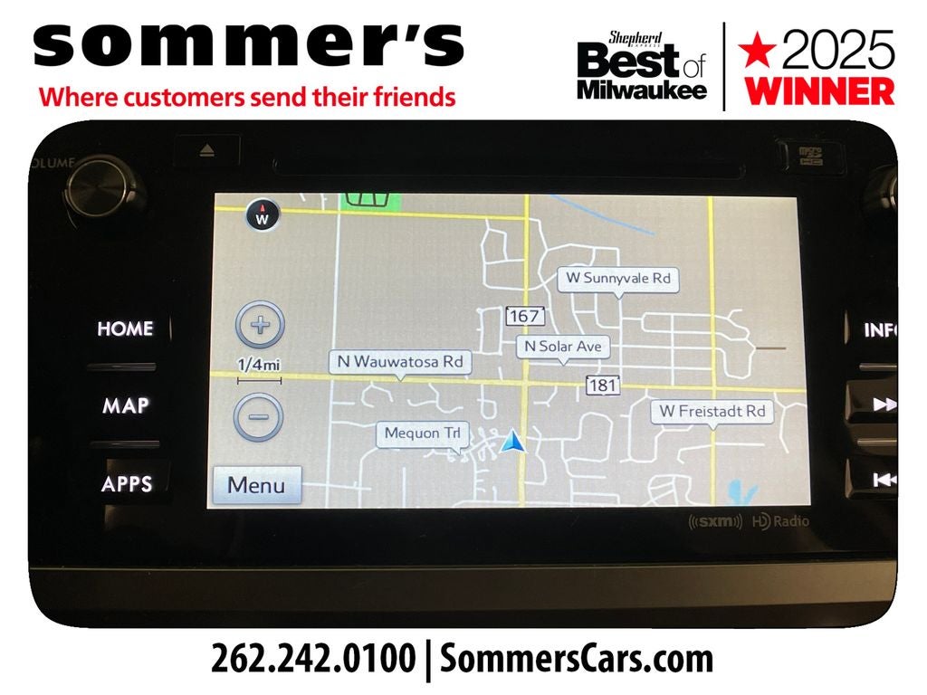 Navigation helps keep directions close at hand on every trip. HD Radio, smart device integration, a universal garage door opener, and steering wheel audio controls support connected driving.
