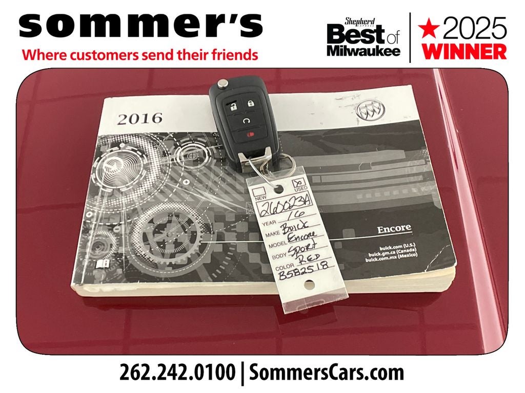 Find this 2016 Buick Encore Sport Touring at Sommers Automotive in Mequon, just north of Milwaukee serving Wisconsin drivers from Cedarburg, Grafton, Port Washington, Shorewood, Whitefish Bay, Fox Point, Bayside, Glendale, Wauwatosa, Brookfield, West Bend, Menomonee Falls, Germantown, Sussex, Hartford, Oconomowoc, Pewaukee, New Berlin, Franklin, Oak Creek, Racine, Kenosha, Muskego, Mukwonago, Hales Corners, Cudahy, South Milwaukee, and many more communities throughout the greater Milwaukee, Ozaukee County, Washington County, Waukesha County, and southeastern Wisconsin area.