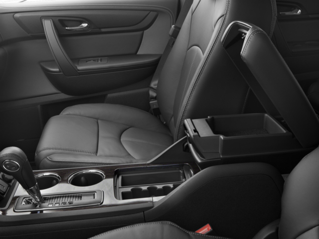 - Console, front center with 2 cup holders, covered storage bin and sliding armrest with storage
