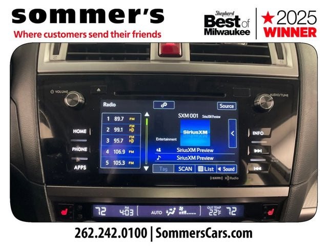 Find this 2017 Subaru Legacy 2.5i Premium at Sommer's Automotive in Mequon, just north of Milwaukee serving Wisconsin drivers from Cedarburg, Grafton, Port Washington, Shorewood, Whitefish Bay, Fox Point, Bayside, Glendale, Wauwatosa, Brookfield, West Bend, Menomonee Falls, Germantown, Sussex, Hartford, Oconomowoc, Pewaukee, New Berlin, Franklin, Oak Creek, Racine, Kenosha, Muskego, Mukwonago, Hales Corners, Cudahy, South Milwaukee, and many more communities throughout the greater Milwaukee, Ozaukee County, Washington County, Waukesha County, and southeastern Wisconsin area.