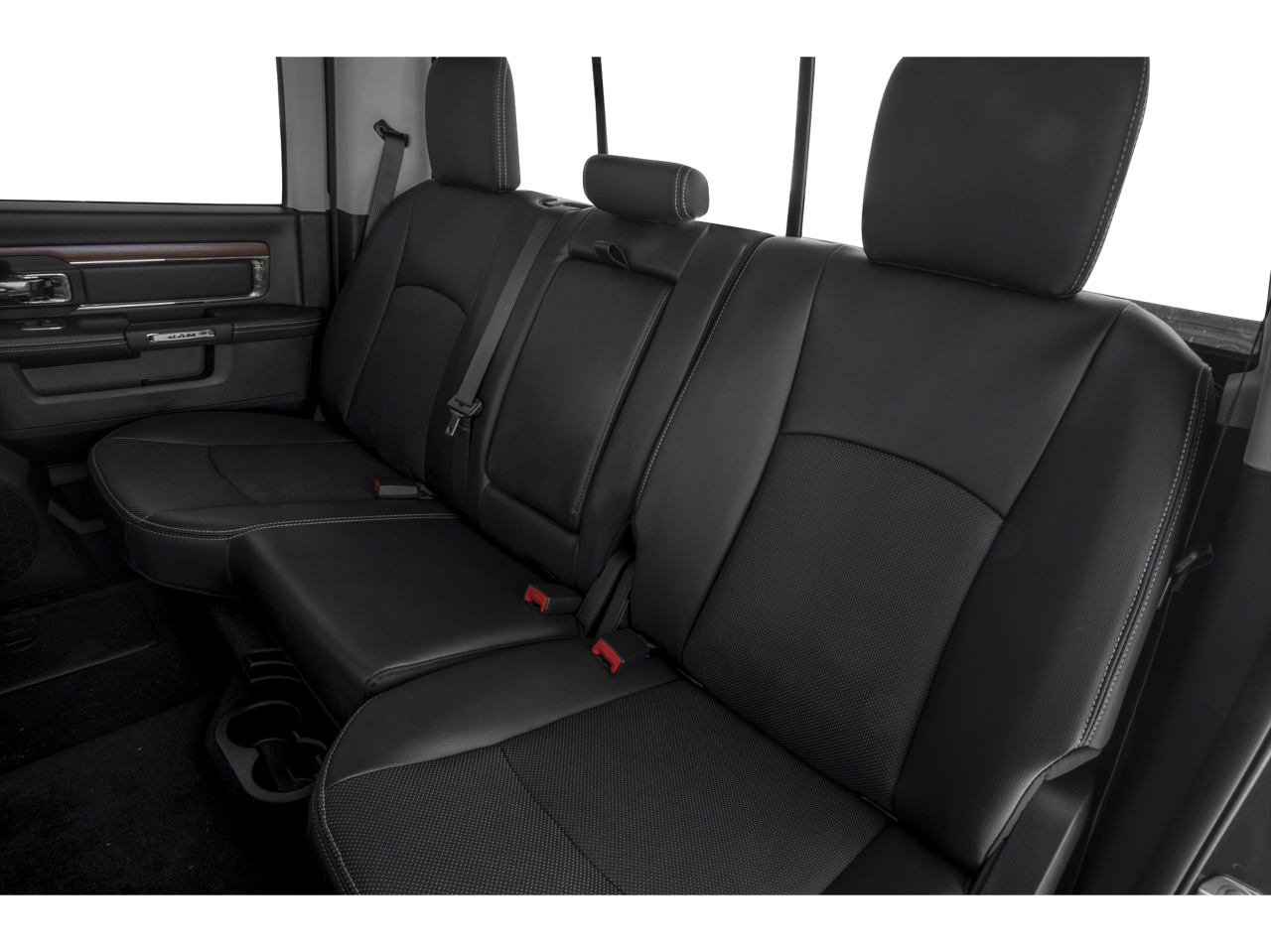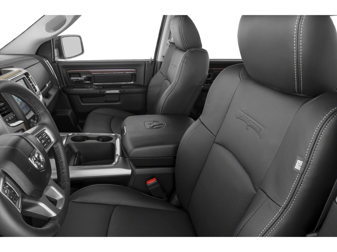 Red Pearl paint, a sun/moonroof, chrome wheels, fog lamps, tow mirrors, and a tow hitch give this Ram a bold, capable look. Inside, the Black cabin adds woodgrain trim, an auto-dimming rearview mirror, floor mats, and a bed liner for added utility.