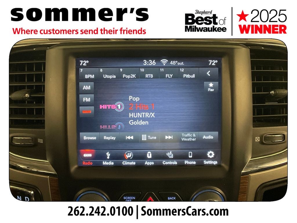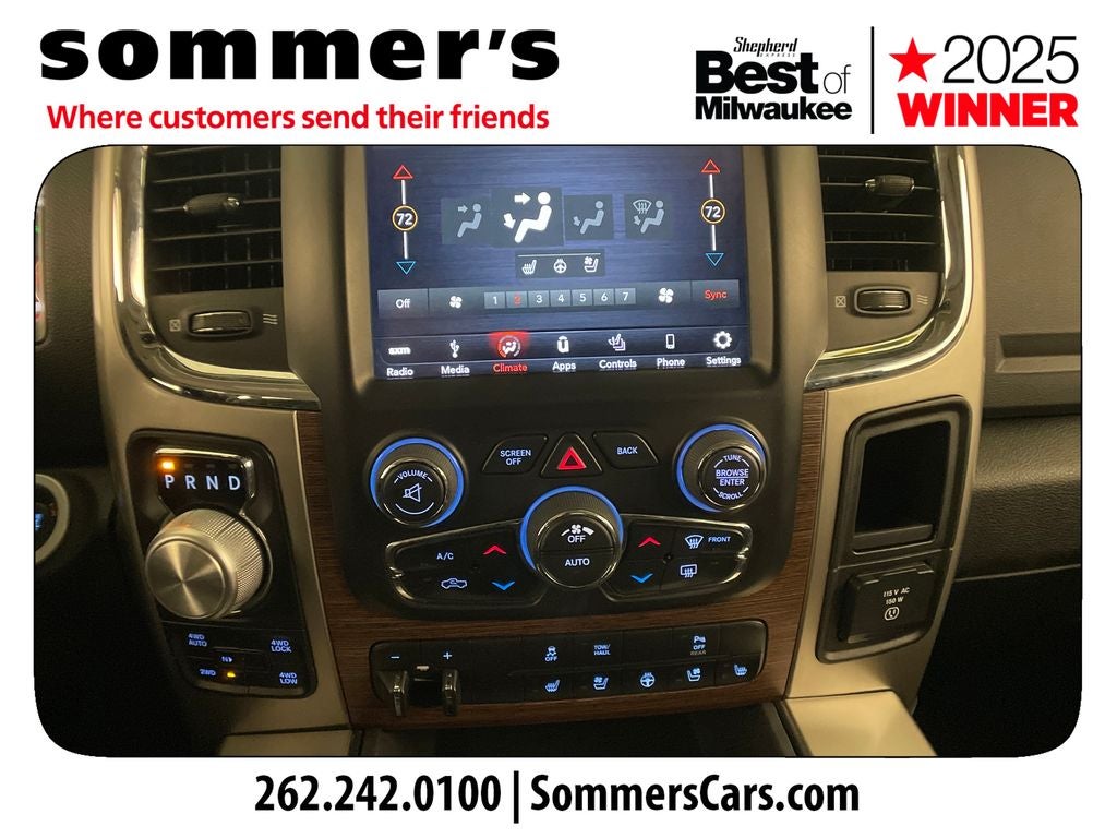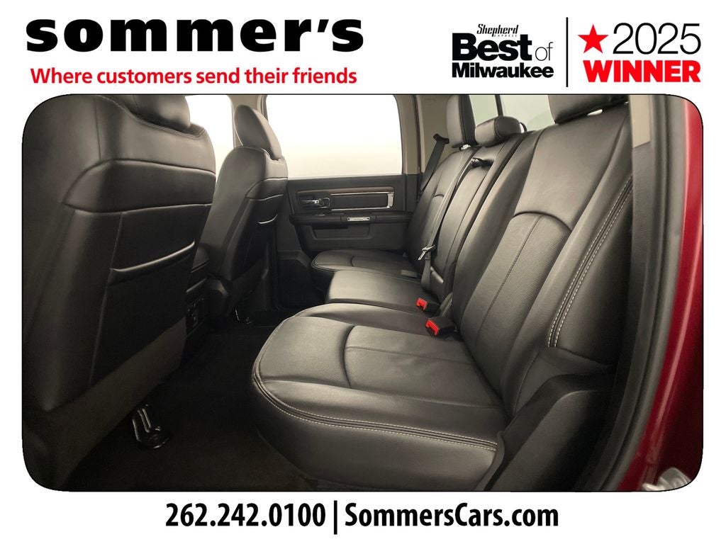 Find this 2018 Ram 1500 Laramie Crew Cab at Sommer's Automotive in Mequon, just north of Milwaukee serving Wisconsin drivers from Cedarburg, Grafton, Port Washington, Shorewood, Whitefish Bay, Fox Point, Bayside, Glendale, Wauwatosa, Brookfield, West Bend, Menomonee Falls, Germantown, Sussex, Hartford, Oconomowoc, Pewaukee, New Berlin, Franklin, Oak Creek, Racine, Kenosha, Muskego, Mukwonago, Hales Corners, Cudahy, South Milwaukee, and many more communities throughout the greater Milwaukee, Ozaukee County, Washington County, Waukesha County, and southeastern Wisconsin area.