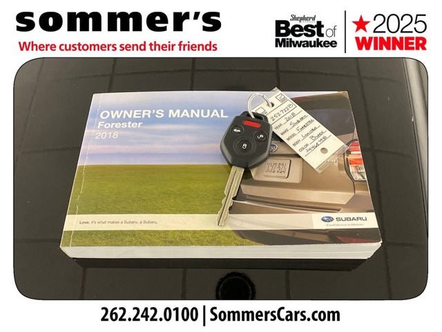 Find this 2018 Subaru Forester 2.5i Limited at Sommer's Automotive in Mequon, just north of Milwaukee serving Wisconsin drivers from Cedarburg, Grafton, Port Washington, Shorewood, Whitefish Bay, Fox Point, Bayside, Glendale, Wauwatosa, Brookfield, West Bend, Menomonee Falls, Germantown, Sussex, Hartford, Oconomowoc, Pewaukee, New Berlin, Franklin, Oak Creek, Racine, Kenosha, Muskego, Mukwonago, Hales Corners, Cudahy, South Milwaukee, and many more communities throughout the greater Milwaukee, Ozaukee County, Washington County, Waukesha County, and southeastern Wisconsin area.