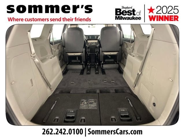 FWD | 3.3L V6 | 8-speed automatic | Leather seats w/ heated fronts | Dual power sliding doors | Remote start & keyless start | Apple CarPlay & Android Auto | Backup camera & Rear Parking Aid | Blind Spot Monitor & Rear Cross-Traffic Alert | Tri-zone climate control w/ rear A/C | Power driver seat w/ lumbar | Universal garage door opener | Bluetooth® & satellite radio | Auto headlamps w/ DRL | Heated power mirrors w/ turn signals | Aluminum wheels | Privacy glass | Manual liftgate