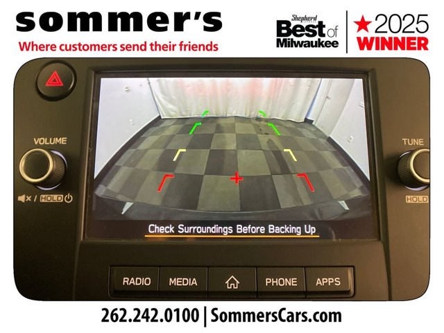 Apple CarPlay and Android Auto integrate navigation apps, calls, and music with steering wheel audio controls. A backup camera and trip computer support easy parking and at-a-glance driving data.