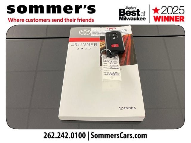 Find this 2020 Toyota 4Runner Venture Edition at Sommer's Automotive in Mequon, just north of Milwaukee serving Wisconsin drivers from Cedarburg, Grafton, Port Washington, Shorewood, Whitefish Bay, Fox Point, Bayside, Glendale, Wauwatosa, Brookfield, West Bend, Menomonee Falls, Germantown, Sussex, Hartford, Oconomowoc, Pewaukee, New Berlin, Franklin, Oak Creek, Racine, Kenosha, Muskego, Mukwonago, Hales Corners, Cudahy, South Milwaukee, and many more communities throughout the greater Milwaukee, Ozaukee County, Washington County, Waukesha County, and southeastern Wisconsin area.