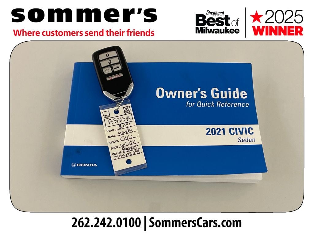 Find this 2021 Honda Civic Sport at Sommer's Automotive in Mequon, just north of Milwaukee serving Wisconsin drivers from Cedarburg, Grafton, Port Washington, Shorewood, Whitefish Bay, Fox Point, Bayside, Glendale, Wauwatosa, Brookfield, West Bend, Menomonee Falls, Germantown, Sussex, Hartford, Oconomowoc, Pewaukee, New Berlin, Franklin, Oak Creek, Racine, Kenosha, Muskego, Mukwonago, Hales Corners, Cudahy, South Milwaukee, and many more communities throughout the greater Milwaukee, Ozaukee County, Washington County, Waukesha County, and southeastern Wisconsin area.