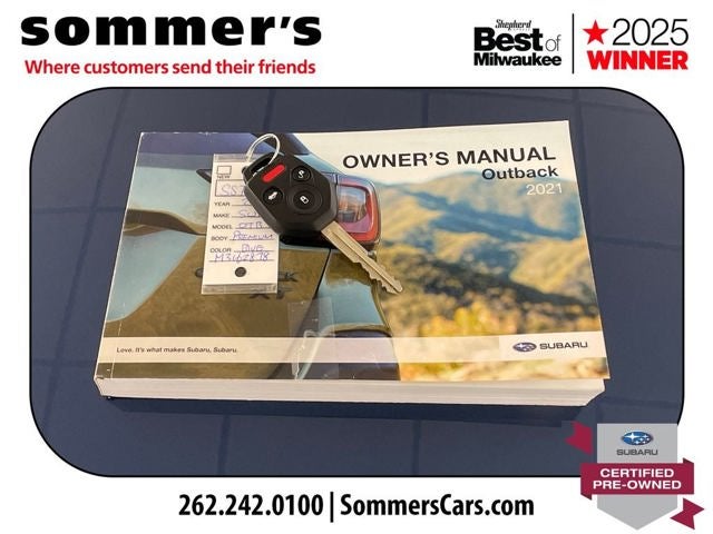 Find this 2021 Subaru Outback Premium at Sommer's Automotive in Mequon, just north of Milwaukee serving Wisconsin drivers from Cedarburg, Grafton, Port Washington, Shorewood, Whitefish Bay, Fox Point, Bayside, Glendale, Wauwatosa, Brookfield, West Bend, Menomonee Falls, Germantown, Sussex, Hartford, Oconomowoc, Pewaukee, New Berlin, Franklin, Oak Creek, Racine, Kenosha, Muskego, Mukwonago, Hales Corners, Cudahy, South Milwaukee, and many more communities throughout the greater Milwaukee, Ozaukee County, Washington County, Waukesha County, and southeastern Wisconsin area.
