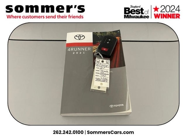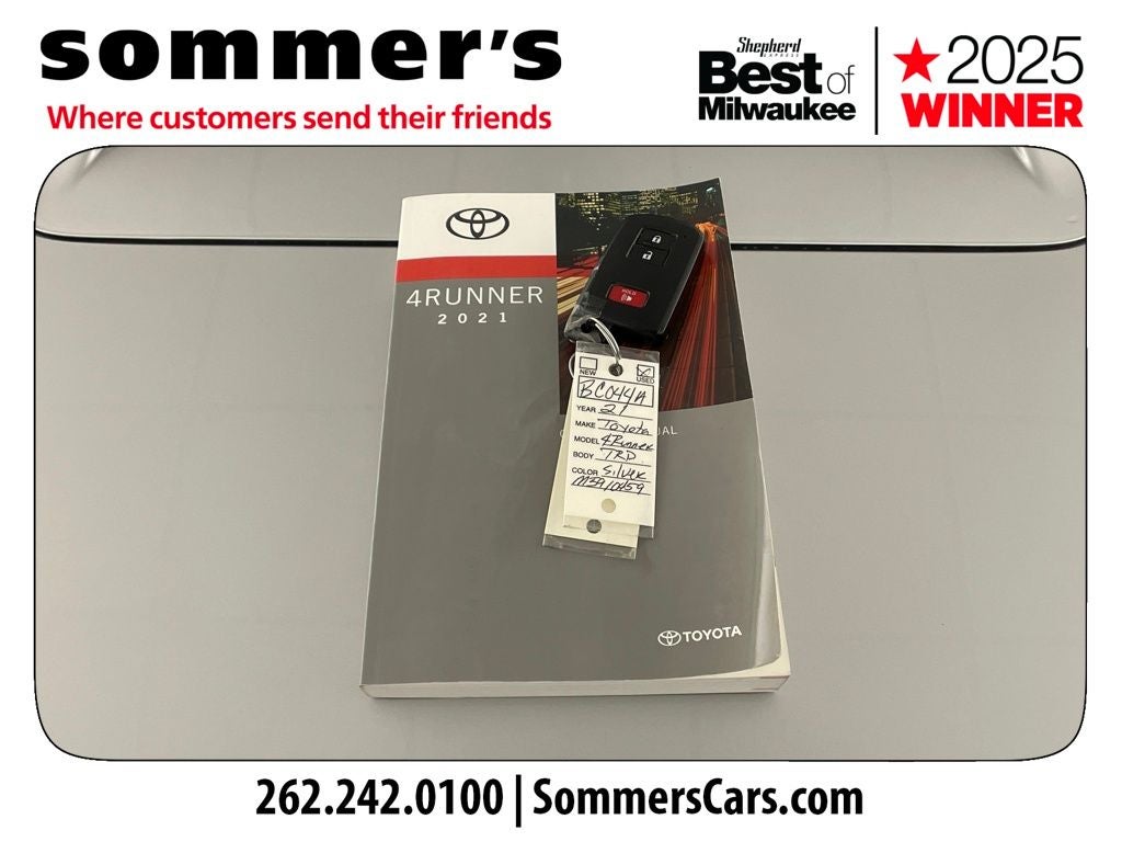 Find this 2021 Toyota 4Runner TRD Off-Road at Sommer's Automotive in Mequon, just north of Milwaukee serving Wisconsin drivers from Cedarburg, Grafton, Port Washington, Shorewood, Whitefish Bay, Fox Point, Bayside, Glendale, Wauwatosa, Brookfield, West Bend, Menomonee Falls, Germantown, Sussex, Hartford, Oconomowoc, Pewaukee, New Berlin, Franklin, Oak Creek, Racine, Kenosha, Muskego, Mukwonago, Hales Corners, Cudahy, South Milwaukee, and many more communities throughout the greater Milwaukee, Ozaukee County, Washington County, Waukesha County, and southeastern Wisconsin area..