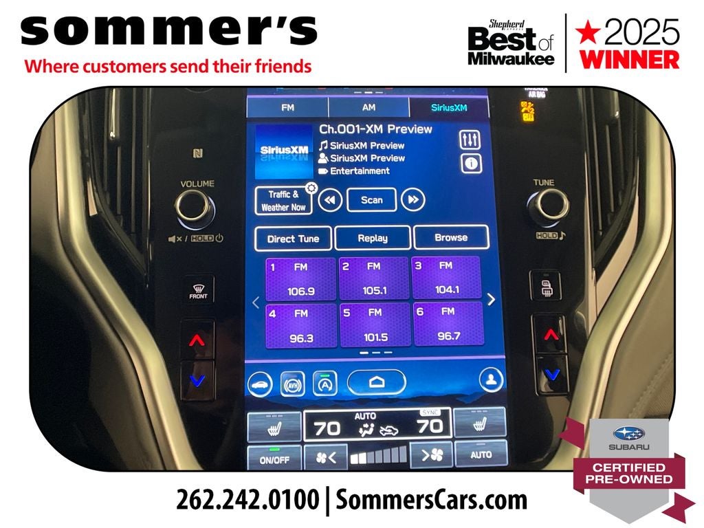 - Radio: Subaru STARLINK 11.6" Multimedia Plus Sys -inc: AM/FM stereo, HD Radio, multi-touch gesture high resolution display screen, voice activated controls, Bluetooth® audio streaming and hands-free phone connectivity w/SMS text messaging, Near Field Communication (NFC), iPod control capability, SiriusXM All Access radio (4 months free trial/subscription required after), SiriusXM Travel Link (4 months free trial/subscription required after), smartphone integration: Android Auto, Apple CarPlay and STARLINK cloud applications, USB and Over The Air (OTA) audio system update, 6 speakers, 3.5mm auxiliary input jack and front dual USB input ports