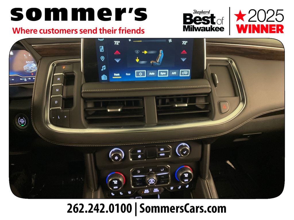 Find this 2023 Chevrolet Tahoe Premier at Sommer's Automotive in Mequon, just north of Milwaukee serving Wisconsin drivers from Cedarburg, Grafton, Port Washington, Shorewood, Whitefish Bay, Fox Point, Bayside, Glendale, Wauwatosa, Brookfield, West Bend, Menomonee Falls, Germantown, Sussex, Hartford, Oconomowoc, Pewaukee, New Berlin, Franklin, Oak Creek, Racine, Kenosha, Muskego, Mukwonago, Hales Corners, Cudahy, South Milwaukee, and many more communities throughout the greater Milwaukee, Ozaukee County, Washington County, Waukesha County, and southeastern Wisconsin area.