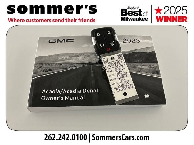 Find this 2023 GMC Acadia SLT at Sommer's Automotive in Mequon, just north of Milwaukee serving Wisconsin drivers from Cedarburg, Grafton, Port Washington, Shorewood, Whitefish Bay, Fox Point, Bayside, Glendale, Wauwatosa, Brookfield, West Bend, Menomonee Falls, Germantown, Sussex, Hartford, Oconomowoc, Pewaukee, New Berlin, Franklin, Oak Creek, Racine, Kenosha, Muskego, Mukwonago, Hales Corners, Cudahy, South Milwaukee, and many more communities throughout the greater Milwaukee, Ozaukee County, Washington County, Waukesha County, and southeastern Wisconsin area.