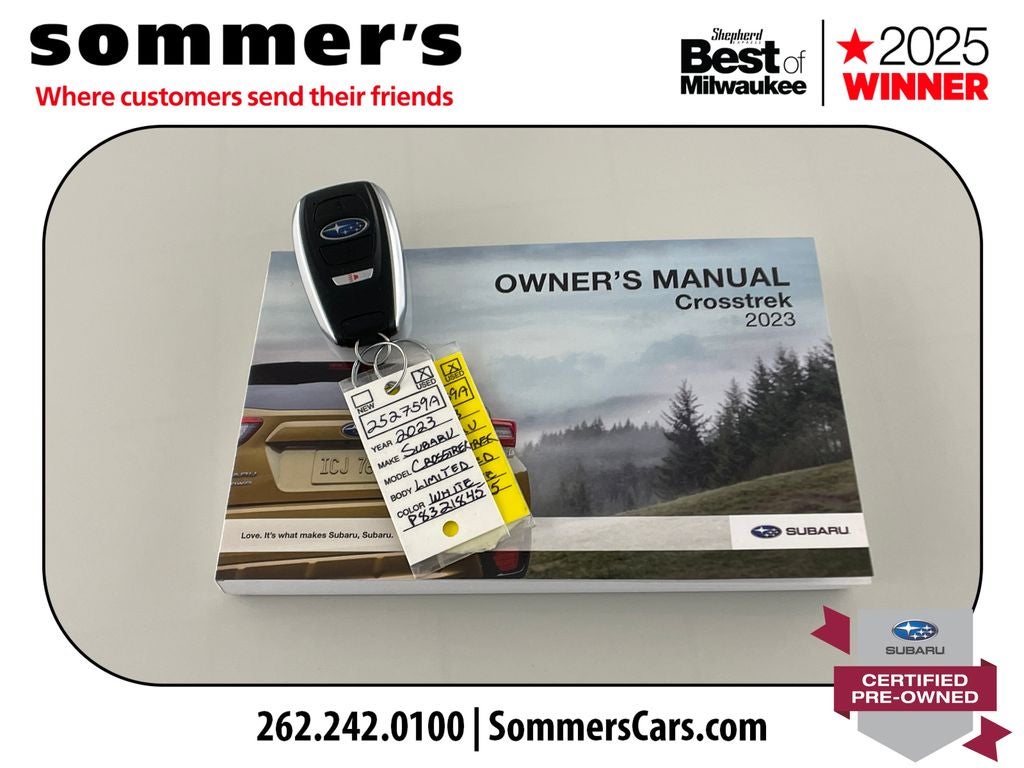 Find this 2023 Subaru Crosstrek Limited at Sommer's Automotive in Mequon, just north of Milwaukee serving Wisconsin drivers from Cedarburg, Grafton, Port Washington, Shorewood, Whitefish Bay, Fox Point, Bayside, Glendale, Wauwatosa, Brookfield, West Bend, Menomonee Falls, Germantown, Sussex, Hartford, Oconomowoc, Pewaukee, New Berlin, Franklin, Oak Creek, Racine, Kenosha, Muskego, Mukwonago, Hales Corners, Cudahy, South Milwaukee, and many more communities throughout the greater Milwaukee, Ozaukee County, Washington County, Waukesha County, and southeastern Wisconsin area.