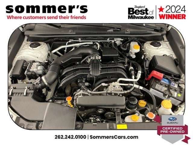AWD | 2.5L H-4 | CVT w/manual mode | 27/34 MPG | Adaptive cruise control w/ lane keep assist | Blind Spot Monitor & Rear Cross-Traffic Alert | Power moonroof | Apple CarPlay & Android Auto | Bluetooth® & WiFi hotspot | Back-up camera | Leather seats w/ heated fronts | Power driver seat | LED headlights w/auto high beam | Fog lamps | Heated mirrors w/turn signals | Aluminum wheels | Crystal White Pearl | Privacy glass