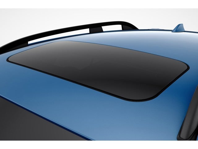 Horizon Blue Pearl pairs with LED headlights, Auto High Beam, fog lamps, and heated turn-signal mirrors for visibility. Moonroof, aluminum wheels, roof rails, privacy glass, and a rear spoiler add style and utility.