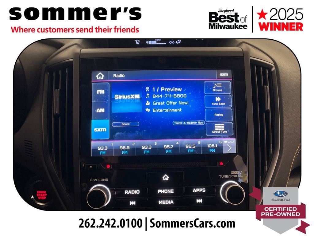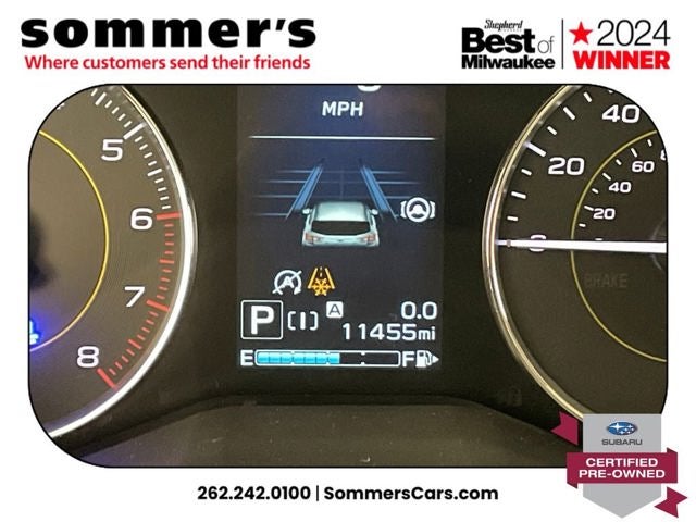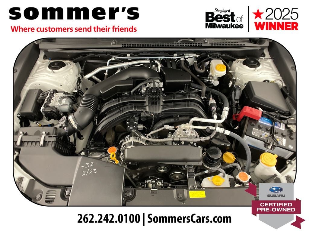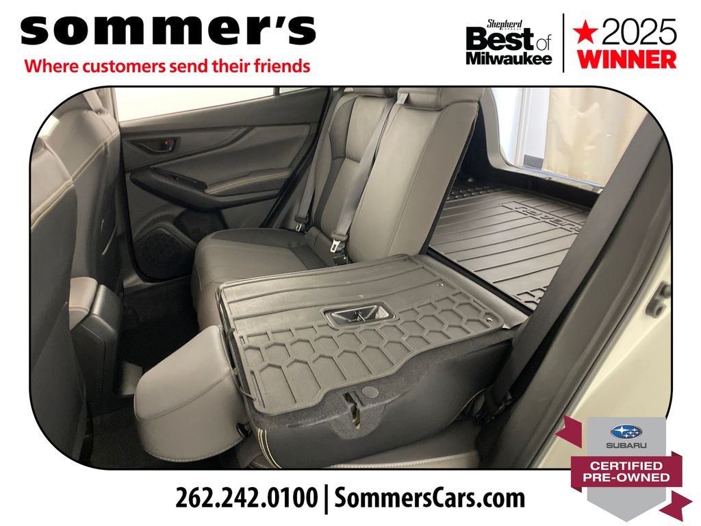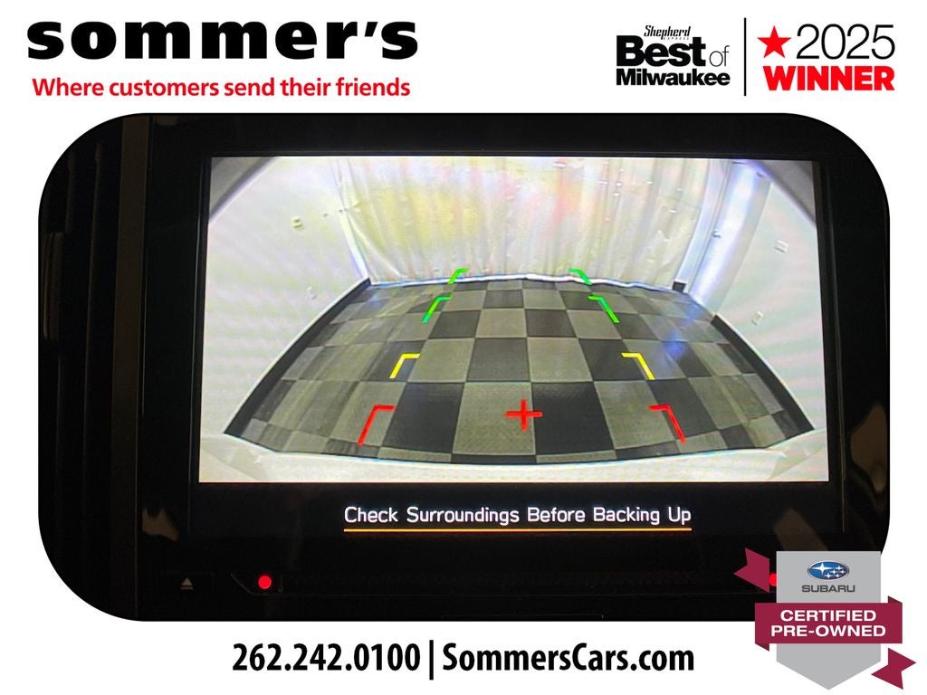 AWD | 2.5L H-4 | CVT w/dual shift mode | EyeSight Pre-Collision Braking | Adaptive Cruise Control w/Lane Centering | Blind Spot Monitor & Rear Cross-Traffic Alert | Apple CarPlay & Android Auto | Sun/Moonroof | Heated front seats | Premium synthetic seats w/yellow stitching | Wi-Fi hotspot | Back-up camera | Keyless entry & push-button start | Aluminum wheels | Fog lamps & LED DRL | Privacy glass & rear spoiler | Crystal White Pearl ext. | Gray interior w/yellow stitching