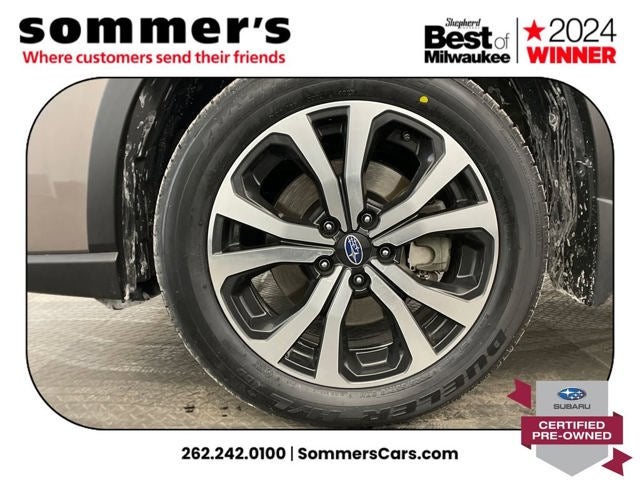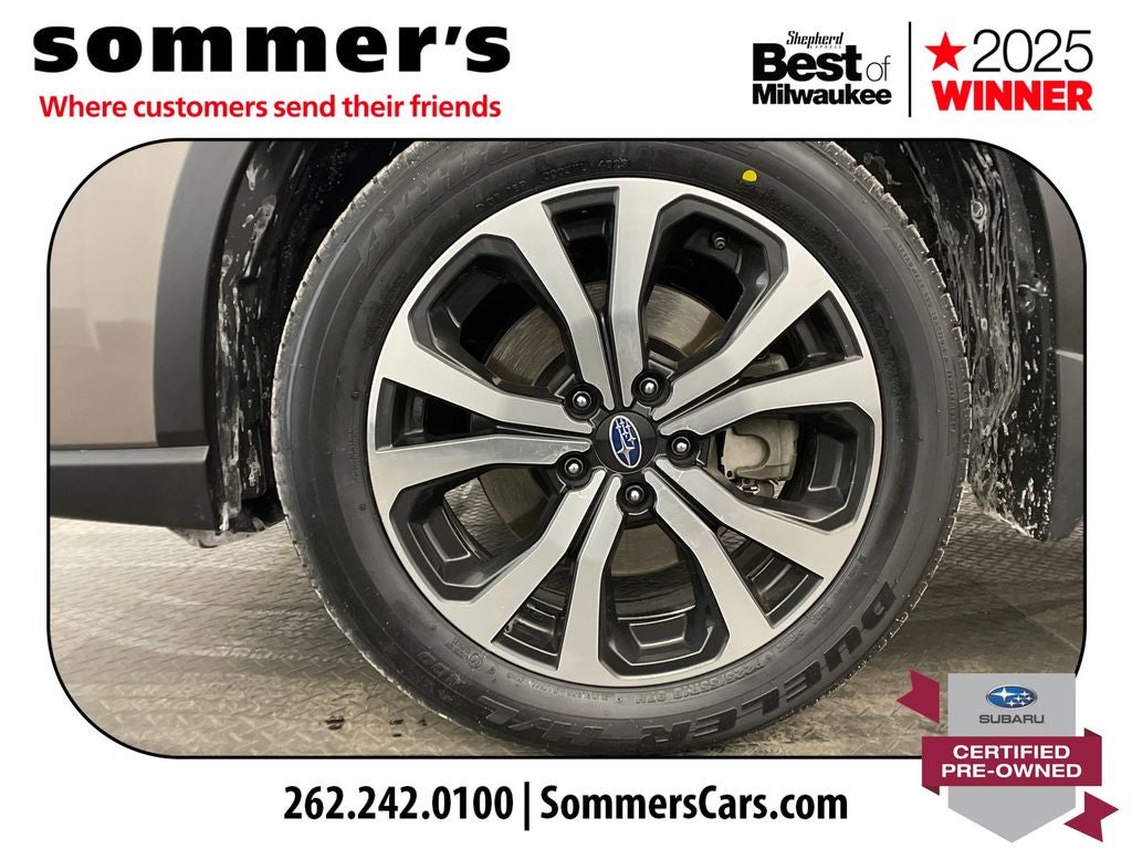 AWD | 2.5L H-4 w/ CVT | 26/33 MPG | Panoramic roof | Leather seats | Heated front seats | Heated steering wheel | Power liftgate | Apple CarPlay & Android Auto | Back-up camera | Blind-Spot Monitor & Rear Cross-Traffic Alert | Adaptive Cruise Control | Lane Keep Assist & Lane Departure Warning | LED headlights & fog lights | Aluminum wheels | Keyless entry & push-button start | Heated power mirrors w/ turn signals | Brilliant Bronze Metallic exterior, Black interior