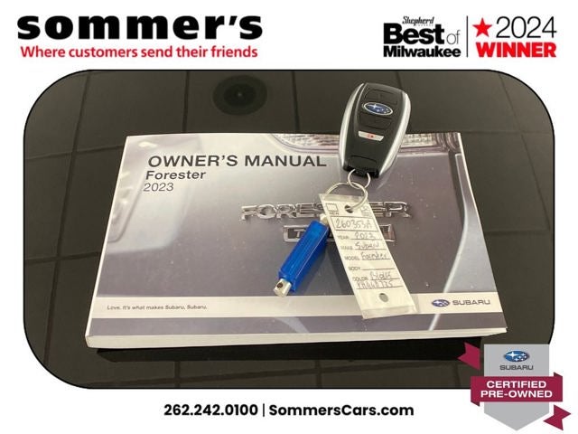 Find this 2023 Subaru Forester Premium at Sommer's Automotive in Mequon, just north of Milwaukee serving Wisconsin drivers in Cedarburg, Grafton, Port Washington, Shorewood, Whitefish Bay, Fox Point, Bayside, Glendale, Wauwatosa, Brookfield, West Bend, Menomonee Falls, Germantown, Sussex, Hartford, Oconomowoc, Pewaukee, New Berlin, Franklin, Oak Creek, Racine, Kenosha, Muskego, Mukwonago, Hales Corners, Cudahy, South Milwaukee, and many more communities throughout the greater Milwaukee, Ozaukee County, Washington County, Waukesha County, and southeastern Wisconsin area.