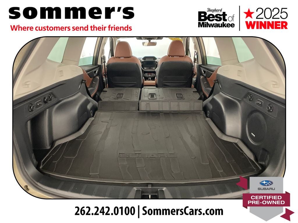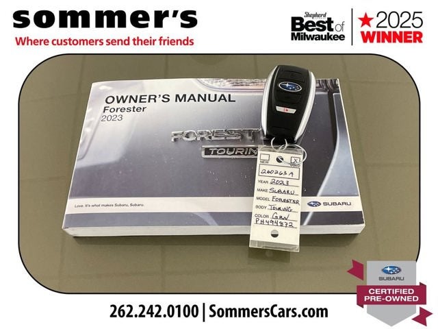 Find this 2023 Subaru Forester Touring at Sommer's Automotive in Mequon, just north of Milwaukee serving Wisconsin drivers in Cedarburg, Grafton, Port Washington, Shorewood, Whitefish Bay, Fox Point, Bayside, Glendale, Wauwatosa, Brookfield, West Bend, Menomonee Falls, Germantown, Sussex, Hartford, Oconomowoc, Pewaukee, New Berlin, Franklin, Oak Creek, Racine, Kenosha, Muskego, Mukwonago, Hales Corners, Cudahy, South Milwaukee, and many more communities throughout the greater Milwaukee, Ozaukee County, Washington County, Waukesha County, and southeastern Wisconsin area.