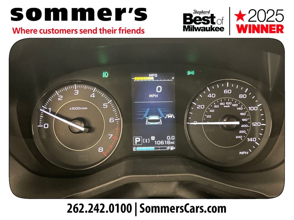 - Radio: Subaru STARLINK 6.5" Multimedia Plus System -inc: AM/FM stereo, HD Radio, single disc CD player w/MP3/WMA/CRR/RW file capability, multi-touch gesture high resolution display screen, voice activated controls, Bluetooth® audio streaming and hands-free phone connectivity, Bluetooth® hands-free SMS text messaging connectivity, iPod control capability, rear-vision camera display, SiriusXM All Access radio (4 months free trial/subscription required after), SiriusXM Travel Link (4 months free trial/subscription required after), smartphone integration: AHA, Android Auto, Apple CarPlay, Pandora, STARLINK cloud applications, 6 speakers, 3.5mm auxiliary input jack, dual USB A input charge ports, roof mounted antenna and audio/satellite connected services