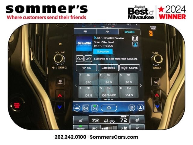 - Radio: Subaru STARLINK 11.6" Multimedia Plus Sys -inc: AM/FM stereo, HD Radio, valet mode, multi-touch gesture high resolution display screen, voice activated controls, Bluetooth® audio streaming and hands-free phone connectivity w/SMS text messaging, Near Field Communication (NFC), iPod control capability, SiriusXM All Access radio (4 months free trial/subscription required after), SiriusXM Travel Link (4 months free trial/subscription required after), smartphone integration w/full screen view and wireless connection: Android Auto, Apple CarPlay and STARLINK cloud applications, USB and Over The Air (OTA) audio system update, harman/kardon surround sound system w/12 speakers, 3.5mm illuminated front auxiliary input jack, illuminated front and rear USB-A and USB-C input/charge ports, roof mounted satellite and connected services antenna