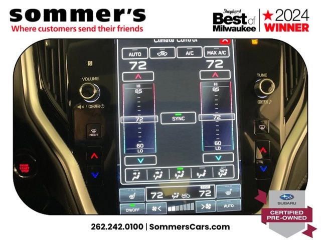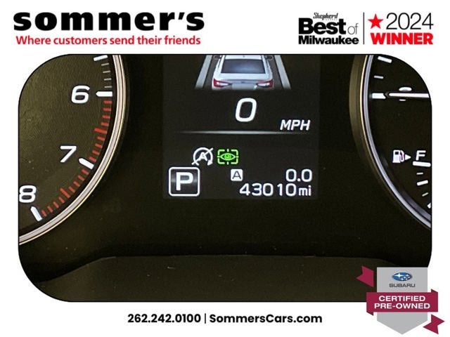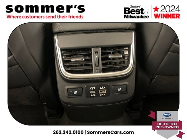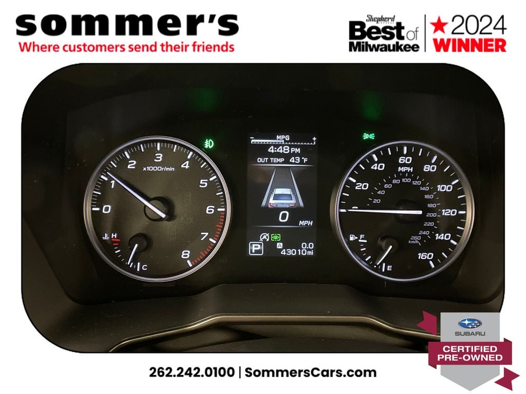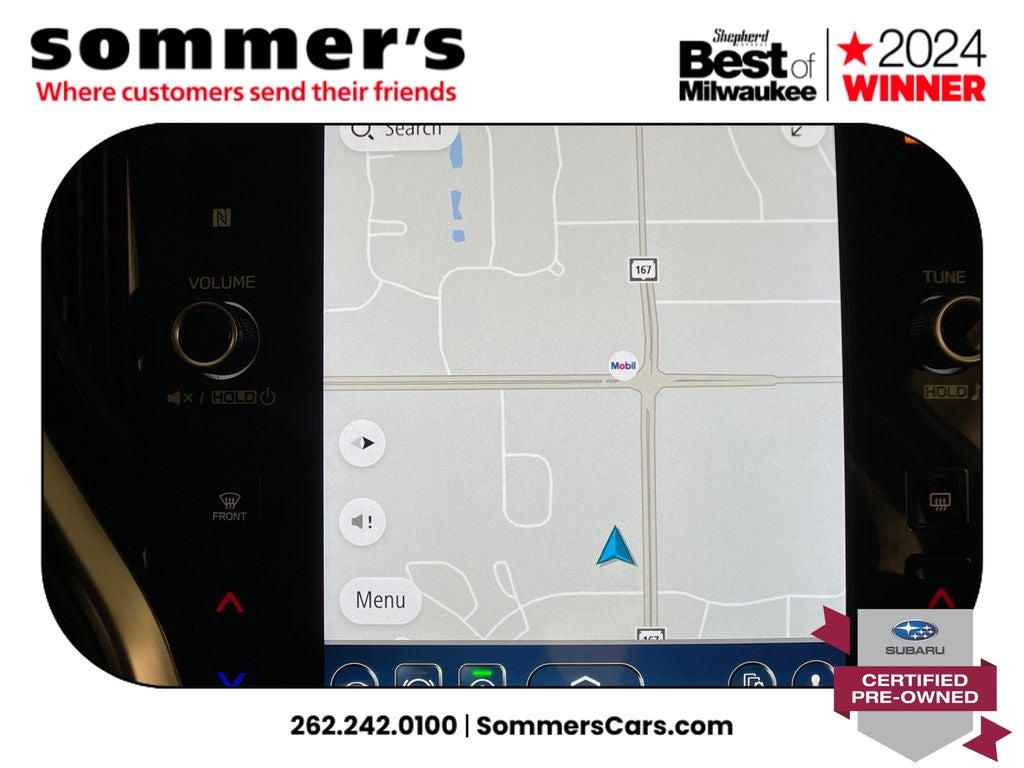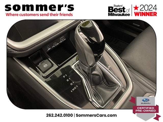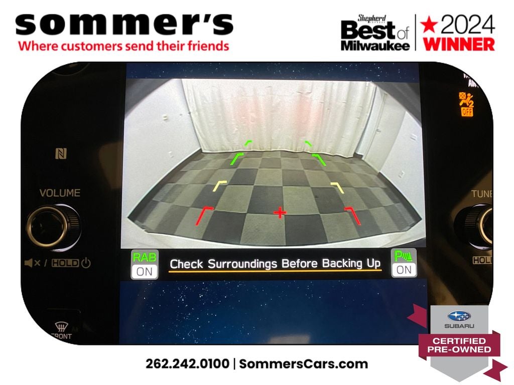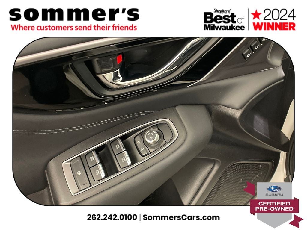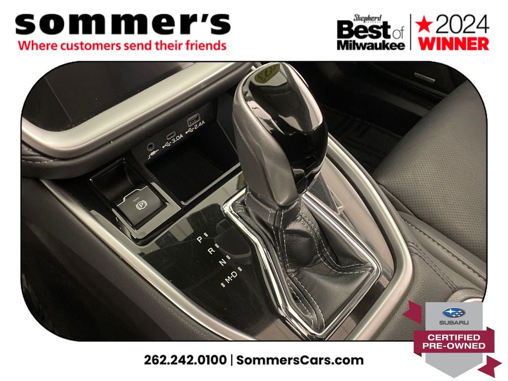 AWD | 2.5L H-4 w/CVT | Heated leather front seats | Power driver & passenger seats w/memory | Sun/Moonroof | Navigation system | Premium sound system | Apple CarPlay & Android Auto | Adaptive cruise w/lane keep | Blind-spot monitor & Rear Cross-Traffic Alert | Driver Monitoring | LED headlights w/auto high beams | Heated mirrors w/turn signals | Auto-dimming mirror & Universal Garage Door Opener | Dual-zone climate control | Back-up camera | Aluminum wheels | Crystal White Pearl exterior