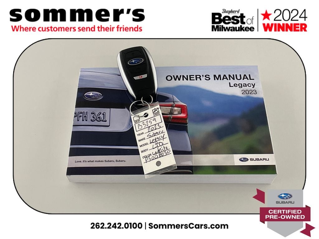 Find this 2023 Subaru Legacy Limited at Sommer's Automotive in Mequon, just north of Milwaukee serving Wisconsin drivers across Cedarburg, Grafton, Port Washington, Shorewood, Whitefish Bay, Fox Point, Bayside, Glendale, Wauwatosa, Brookfield, West Bend, Menomonee Falls, Germantown, Sussex, Hartford, Oconomowoc, Pewaukee, New Berlin, Franklin, Oak Creek, Racine, Kenosha, Muskego, Mukwonago, Hales Corners, Cudahy, South Milwaukee, and many more communities throughout the greater Milwaukee, Ozaukee County, Washington County, Waukesha County, and southeastern Wisconsin area.