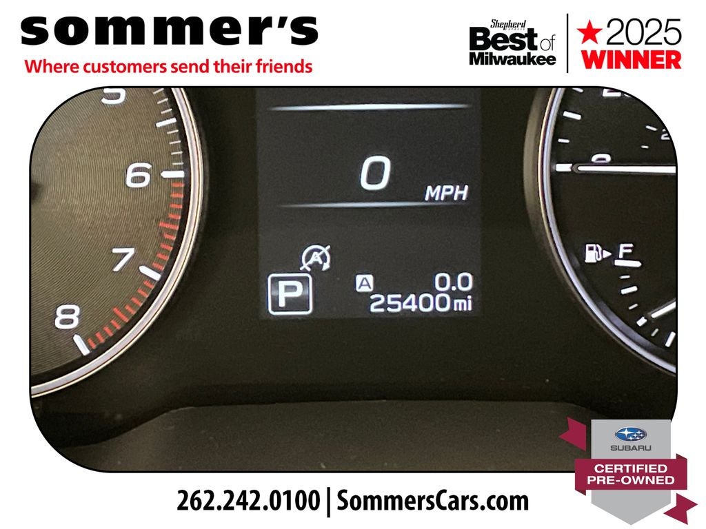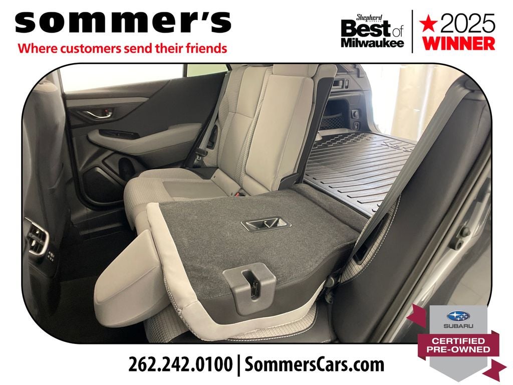 AWD | 2.5L H-4 | CVT | 26/32 City/Highway MPG | Heated front seats | Power liftgate | Apple CarPlay | Android Auto | Back-up camera | Blind Spot Monitor | Cross-Traffic Alert | Adaptive Cruise Control | Keyless Entry | Keyless Start | LED headlights | Aluminum wheels | Magnetite Gray Metallic | Titanium Gray Cloth Interior