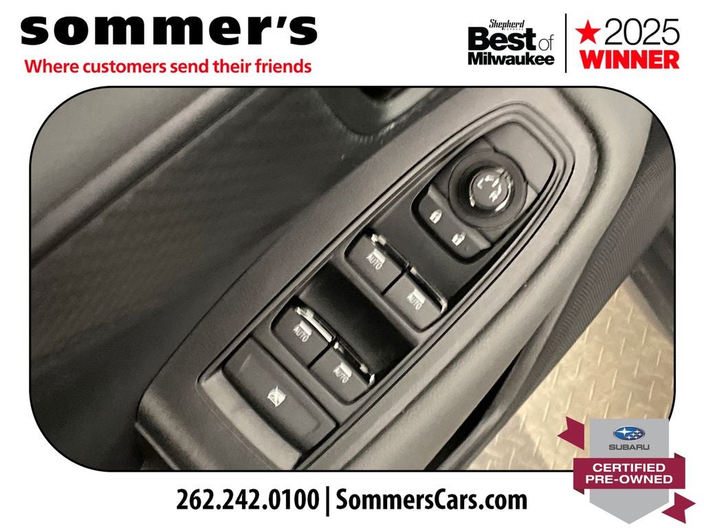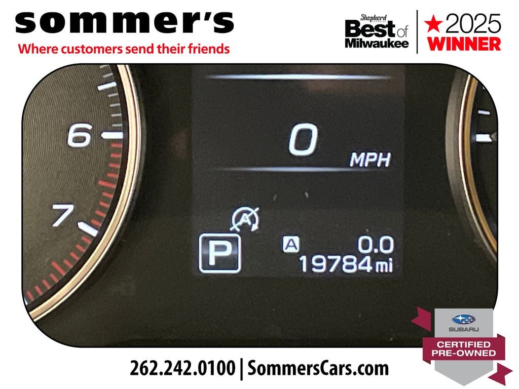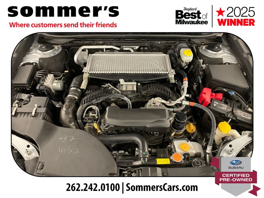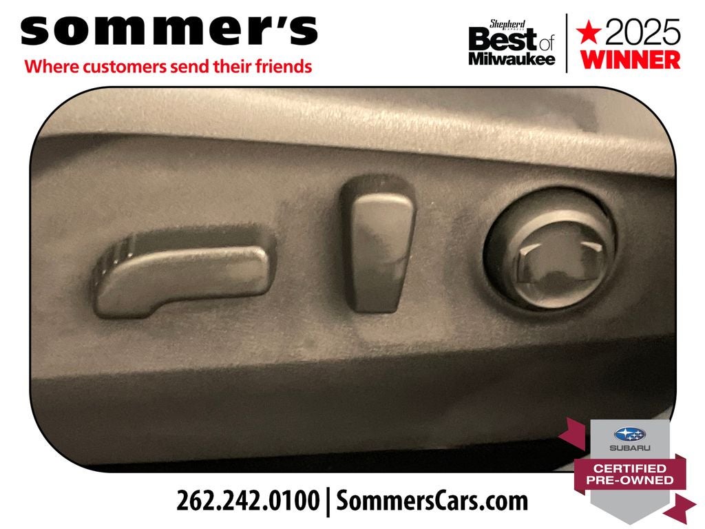 AWD | 2.4L turbo H-4 | 21/26 MPG | EyeSight adaptive cruise & lane keep | Blind-Spot Monitor + Rear Cross-Traffic Alert | Navigation w/Apple CarPlay/Android Auto | Power liftgate | Heated front and rear seats | Power driver seat | Moonroof | LED headlights w/auto high beam | Fog lights | Ice Silver Metallic | Keyless entry/start | Backup camera | Roof rails | Universal garage door opener