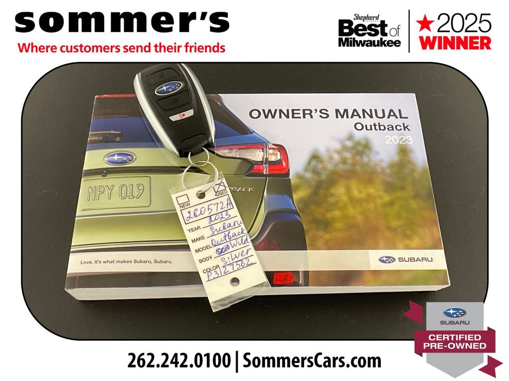 Find this 2023 Subaru Outback Wilderness at Sommer's Automotive in Mequon, just north of Milwaukee serving Wisconsin drivers in Cedarburg, Grafton, Port Washington, Shorewood, Whitefish Bay, Fox Point, Bayside, Glendale, Wauwatosa, Brookfield, West Bend, Menomonee Falls, Germantown, Sussex, Hartford, Oconomowoc, Pewaukee, New Berlin, Franklin, Oak Creek, Racine, Kenosha, Muskego, Mukwonago, Hales Corners, Cudahy, South Milwaukee, and many more communities throughout the greater Milwaukee, Ozaukee County, Washington County, Waukesha County, and southeastern Wisconsin area.