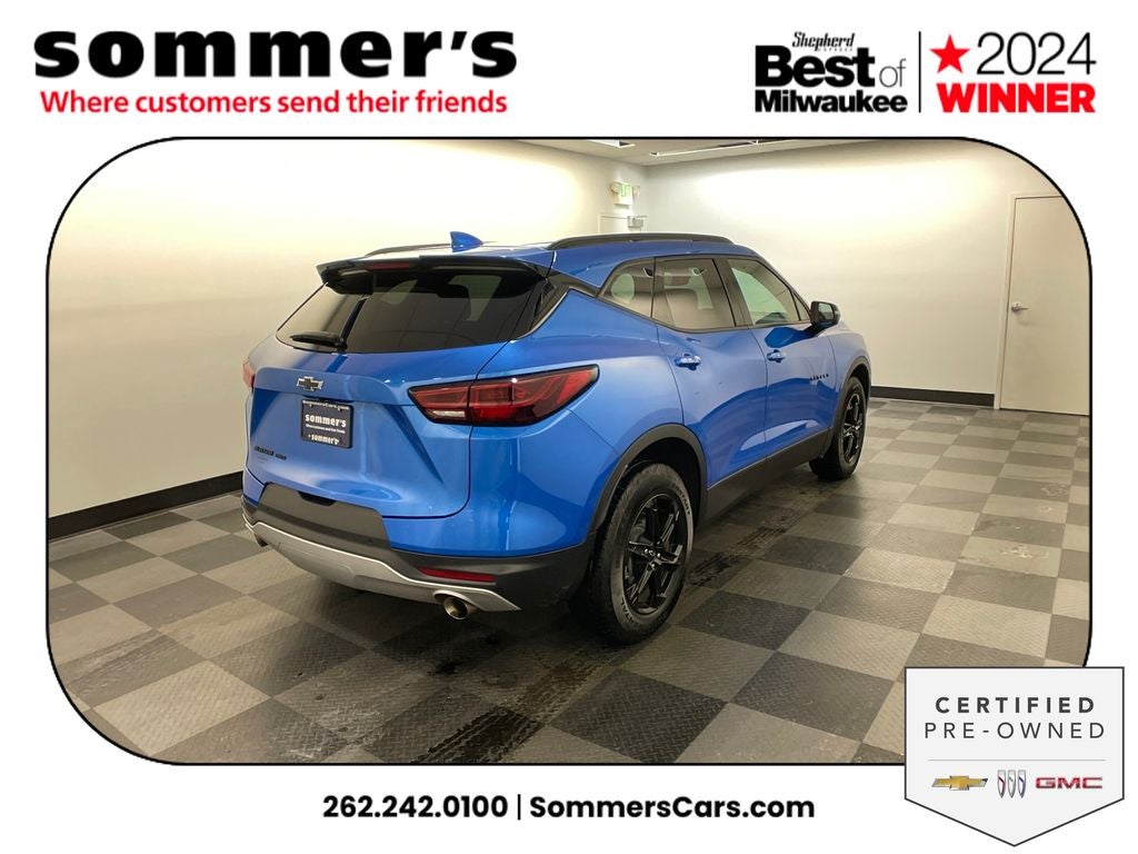 Find this 2024 Chevrolet Blazer LT 3LT at Sommer's Automotive in Mequon, just north of Milwaukee serving Wisconsin drivers in Cedarburg, Grafton, Port Washington, Shorewood, Whitefish Bay, Fox Point, Bayside, Glendale, Wauwatosa, Brookfield, West Bend, Menomonee Falls, Germantown, Sussex, Hartford, Oconomowoc, Pewaukee, New Berlin, Franklin, Oak Creek, Racine, Kenosha, Muskego, Mukwonago, Hales Corners, Cudahy, South Milwaukee, and many more communities throughout the greater Milwaukee, Ozaukee County, Washington County, Waukesha County, and southeastern Wisconsin area.