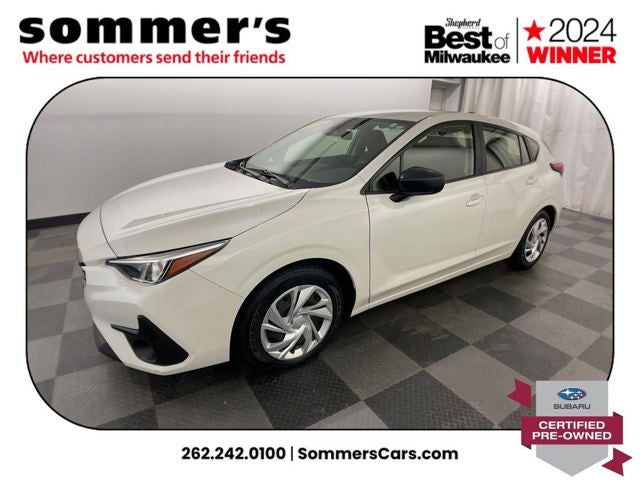 Find this 2024 Subaru Impreza 5-Door at Sommer's Automotive in Mequon, just north of Milwaukee serving Wisconsin drivers in Cedarburg, Grafton, Port Washington, Shorewood, Whitefish Bay, Fox Point, Bayside, Glendale, Wauwatosa, Brookfield, West Bend, Menomonee Falls, Germantown, Sussex, Hartford, Oconomowoc, Pewaukee, New Berlin, Franklin, Oak Creek, Racine, Kenosha, Muskego, Mukwonago, Hales Corners, Cudahy, South Milwaukee, and many more communities throughout the greater Milwaukee, Ozaukee County, Washington County, Waukesha County, and southeastern Wisconsin area.