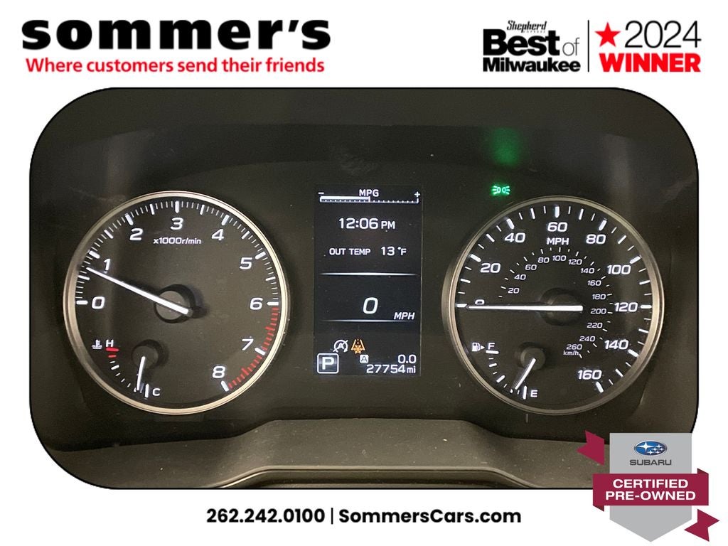 AWD | 2.5L H-4 | CVT | 27/35 MPG | Apple CarPlay/Android Auto | Bluetooth® | Back-Up Camera | Adaptive Cruise Control | EyeSight Pre-Collision Braking | Lane Departure Warning w/Assist | LED Headlights & DRL | Automatic High Beams | Aluminum Wheels | Crystal White Pearl | Auto-Dimming Mirror w/Universal Garage Door Opener | Keyless Entry/Power Locks | A/C Climate Control | Cloth Seats, Slate Black