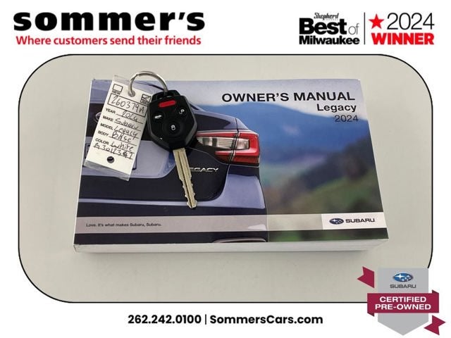 Find this 2024 Subaru Legacy Base at Sommer's Automotive in Mequon, just north of Milwaukee serving Wisconsin drivers in Cedarburg, Grafton, Port Washington, Shorewood, Whitefish Bay, Fox Point, Bayside, Glendale, Wauwatosa, Brookfield, West Bend, Menomonee Falls, Germantown, Sussex, Hartford, Oconomowoc, Pewaukee, New Berlin, Franklin, Oak Creek, Racine, Kenosha, Muskego, Mukwonago, Hales Corners, Cudahy, South Milwaukee, and many more communities throughout the greater Milwaukee, Ozaukee County, Washington County, Waukesha County, and southeastern Wisconsin area.