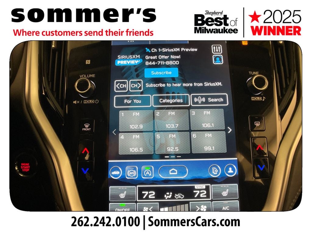 - Radio: Subaru STARLINK 11.6" Multimedia Plus Sys -inc: AM/FM stereo, HD Radio, valet mode, multi-touch gesture high resolution display screen, voice activated controls, Bluetooth® audio streaming and hands-free phone connectivity w/SMS text messaging (refer to subaru.com for cell phone compatibility), Near Field Communication (NFC), iPod control capability, SiriusXM 360L Platinum trial (4 months free trial/subscription required after), SiriusXM Travel Link (4 months free trial/subscription required after), smartphone integration: Android Auto and Apple CarPlay w/full screen view and wireless connection and STARLINK cloud applications (refer to subaru.com for app availability), USB and Over The Air (OTA) audio system update, audio system and Bluetooth® steering wheel control switches, 576 watt harman/kardon surround sound system w/12 speakers, illuminated 3.5mm auxiliary input jack and illuminated USB-A and USB-C input/charge ports SiriusXM Platinum trial available after launch, possibly October 2023.