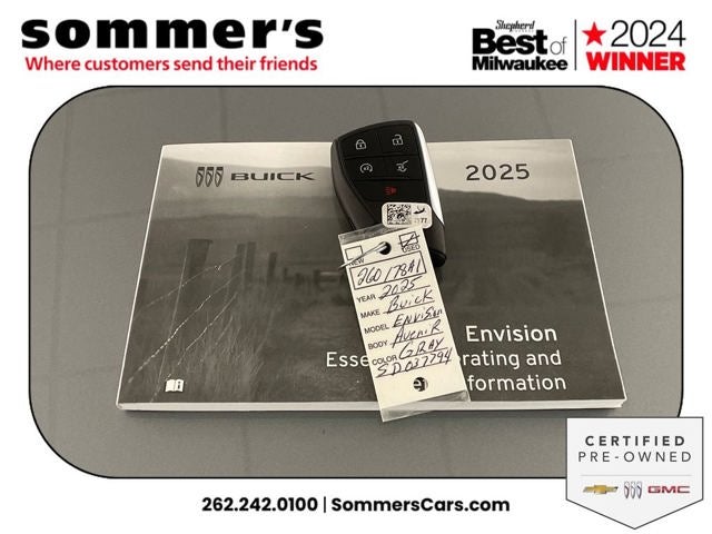 Find this 2025 Buick Envision Avenir at Sommer's Automotive in Mequon, just north of Milwaukee serving Wisconsin drivers from Cedarburg, Grafton, Port Washington, Shorewood, Whitefish Bay, Fox Point, Bayside, Glendale, Wauwatosa, Brookfield, West Bend, Menomonee Falls, Germantown, Sussex, Hartford, Oconomowoc, Pewaukee, New Berlin, Franklin, Oak Creek, Racine, Kenosha, Muskego, Mukwonago, Hales Corners, Cudahy, South Milwaukee, and many more communities throughout the greater Milwaukee, Ozaukee County, Washington County, Waukesha County, and southeastern Wisconsin area.