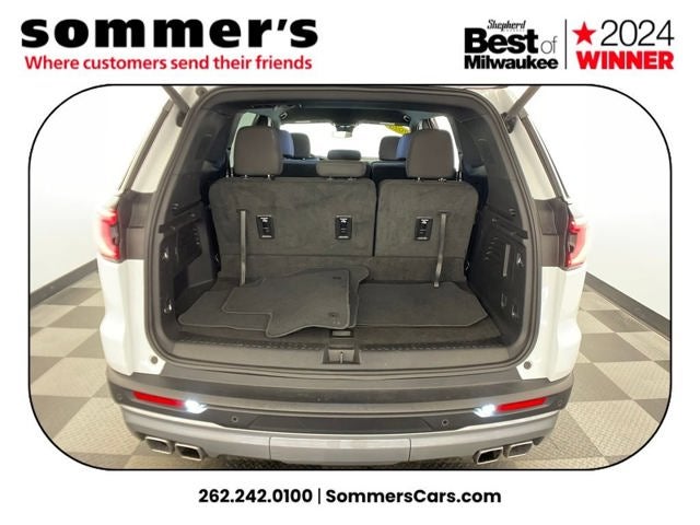 AWD | 2.5L turbo I4 | 8-speed automatic | 8-passenger seating | 3rd-row seat | Hands-free power liftgate | Heated front seats & heated steering wheel | Power driver seat w/lumbar | Premium audio | Keyless entry & push-button start | Remote start | Tri-zone climate w/rear A/C | 11 Driver Information Center | Blind spot monitor w/rear cross-traffic | Lane keep assist & forward collision mitigation | Aerial view surround camera | Automatic highbeams | Summit White, After Dark interior | 18 aluminum wheels | Roof rails | Heated mirrors w/turn signals | Privacy glass | Satellite radio