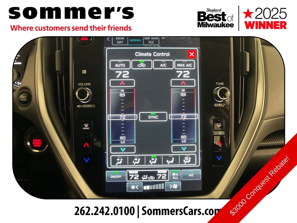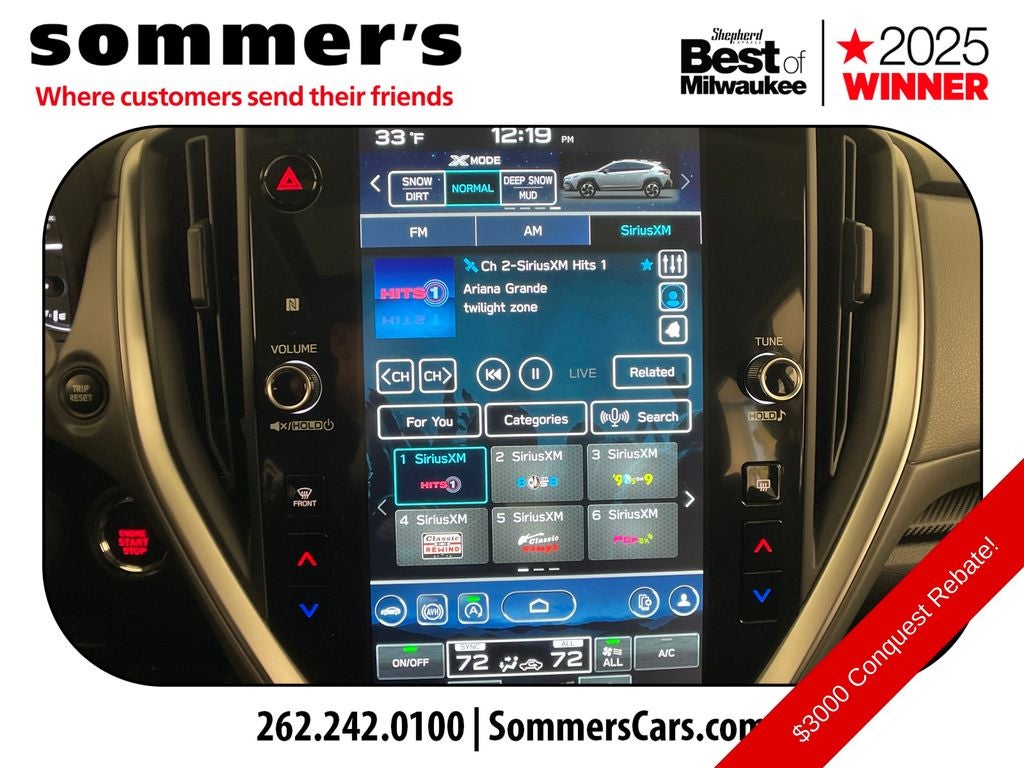 - Radio: Subaru 11.6" Multimedia Plus System -inc: AM/FM stereo, HD Radio, multi-touch gesture high resolution display screen, voice activated controls, Bluetooth® audio streaming and hands-free phone connectivity, Bluetooth® hands-free SMS text messaging connectivity, iPod control capability, SiriusXM w/360L (4 months free trial included/subscription required after), SiriusXM Travel Link (4 months free trial included/subscription required after), smartphone integration: Android Auto and Apple CarPlay w/full screen view and wireless connection, USB and Over The Air (OTA) audio system update, steering wheel audio system and Bluetooth® control switches, 6 speakers (2 dash panel tweeter, 2 front door and 2 rear door), illuminated 3.5mm auxiliary input jack, illuminated front USB A and C input/charge ports and illuminated rear USB A and C charge ports