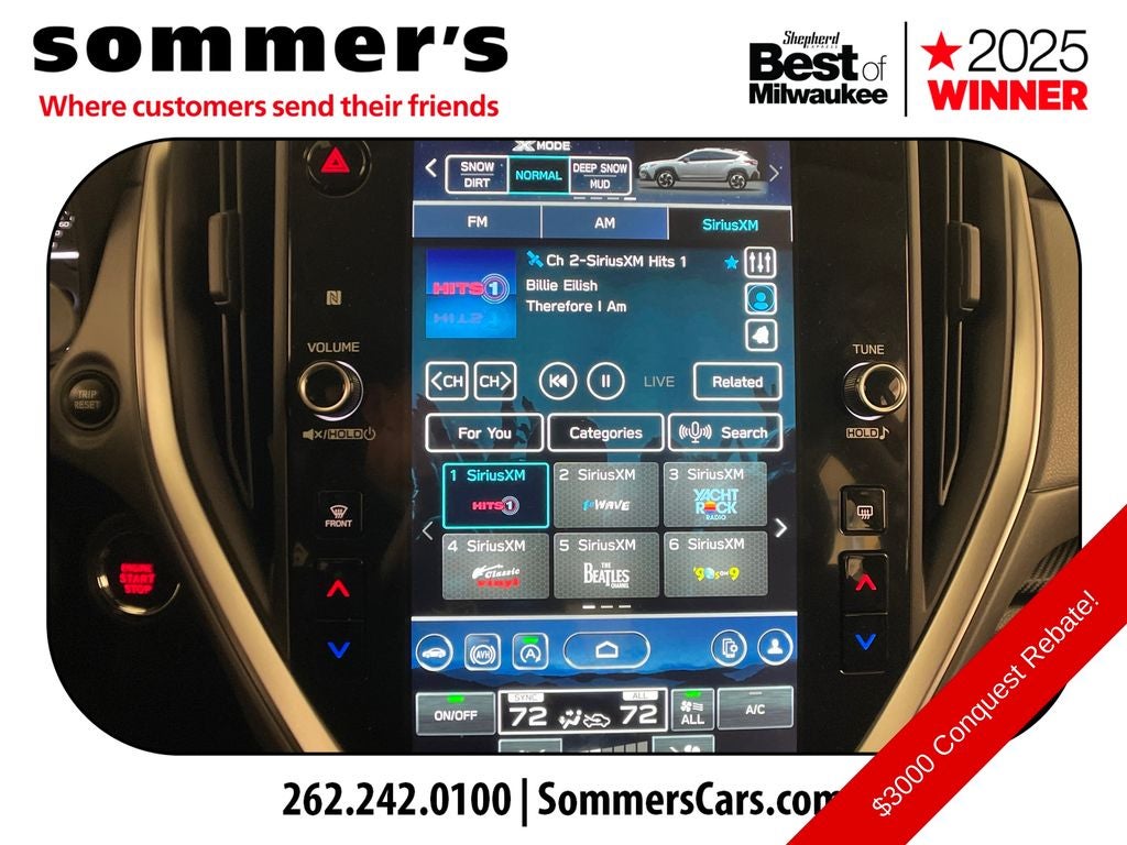 - Radio: Subaru 11.6" Multimedia Plus System -inc: AM/FM stereo, HD Radio, multi-touch gesture high resolution display screen, voice activated controls, Bluetooth® audio streaming and hands-free phone connectivity, Bluetooth® hands-free SMS text messaging connectivity, iPod control capability, SiriusXM w/360L (4 months free trial included/subscription required after), SiriusXM Travel Link (4 months free trial included/subscription required after), smartphone integration: Android Auto and Apple CarPlay w/full screen view and wireless connection, USB and Over The Air (OTA) audio system update, steering wheel audio system and Bluetooth® control switches, 6 speakers (2 dash panel tweeter, 2 front door and 2 rear door), illuminated 3.5mm auxiliary input jack, illuminated front USB A and C input/charge ports and illuminated rear USB A and C charge ports