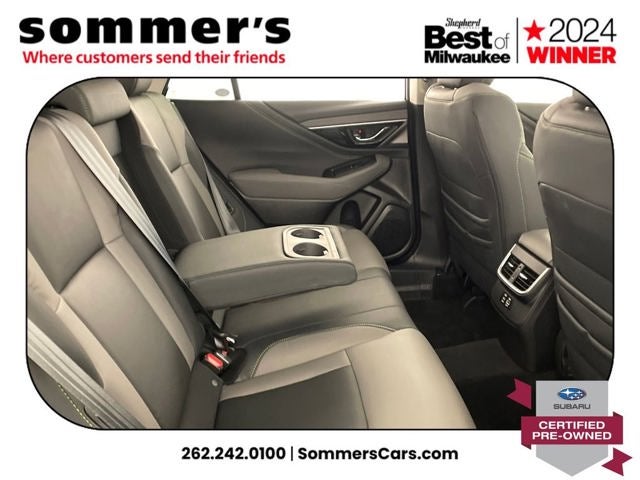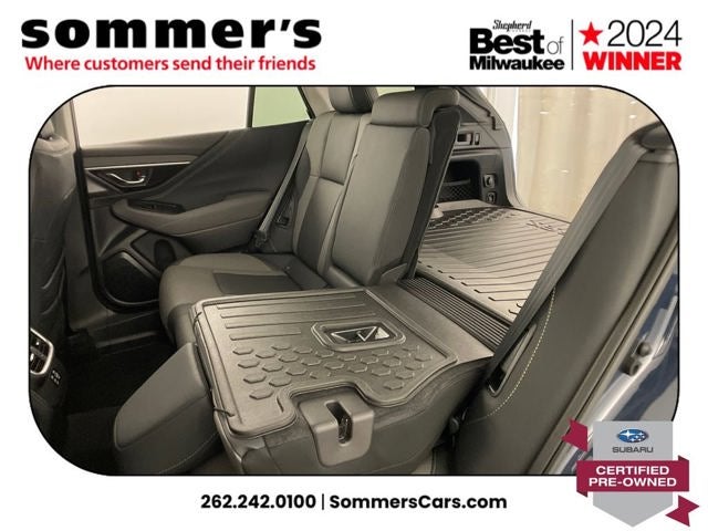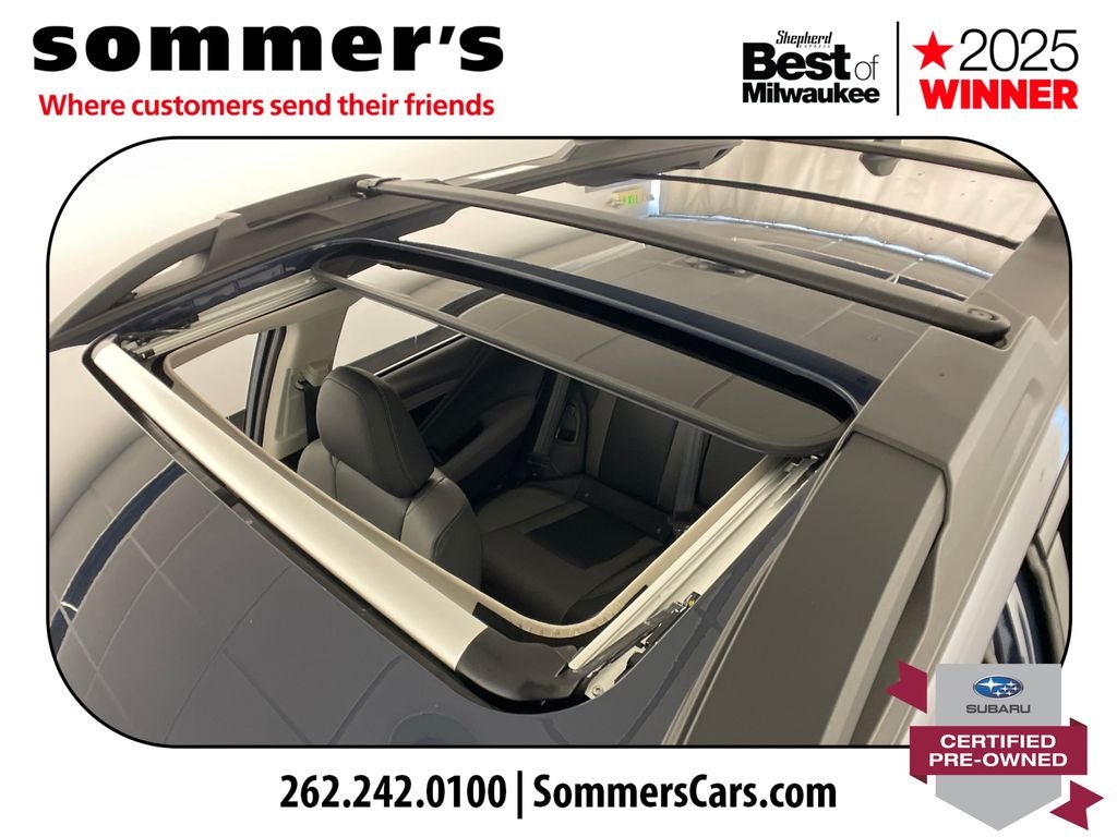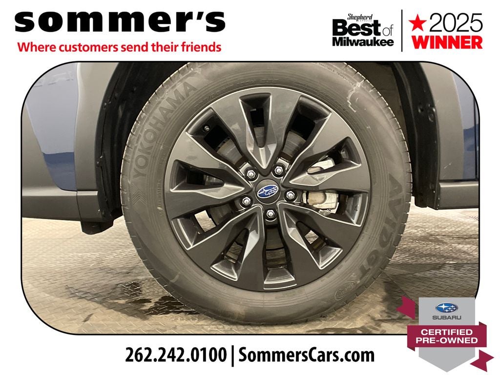 AWD | 2.5L H-4 | CVT | 26/32 MPG | Sun/moonroof | Heated front seats | Heated steering wheel | 8-way power driver seat w/lumbar | Hands-free power liftgate | Apple CarPlay & Android Auto | Premium sound system | WiFi hotspot | Blind-spot monitor | Adaptive cruise control w/lane centering | Lane keep assist | LED headlights & DRL + fog lights | Aluminum wheels | Luggage rack | Cosmic Blue Pearl w/Gray interior