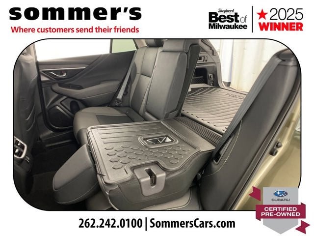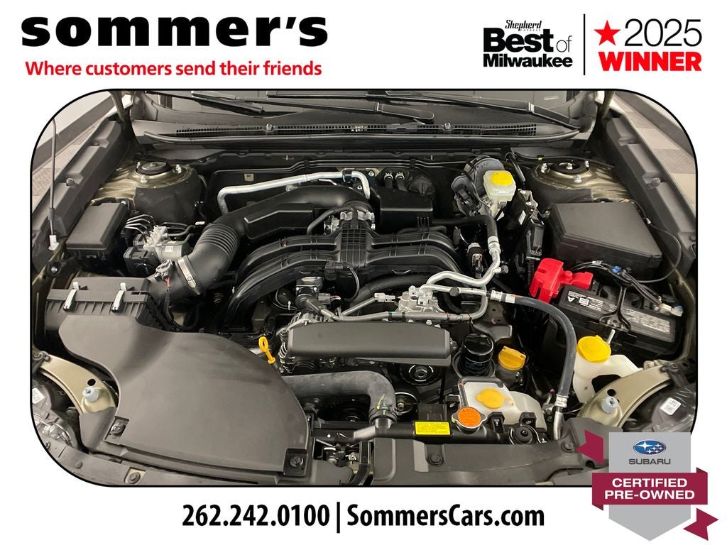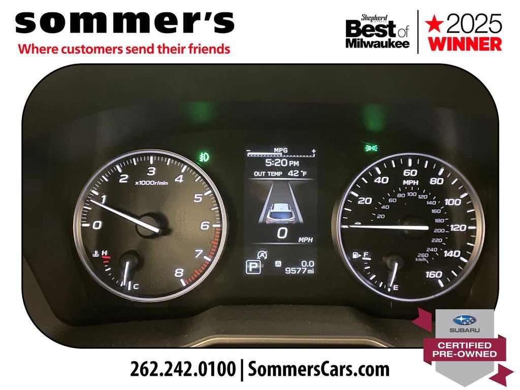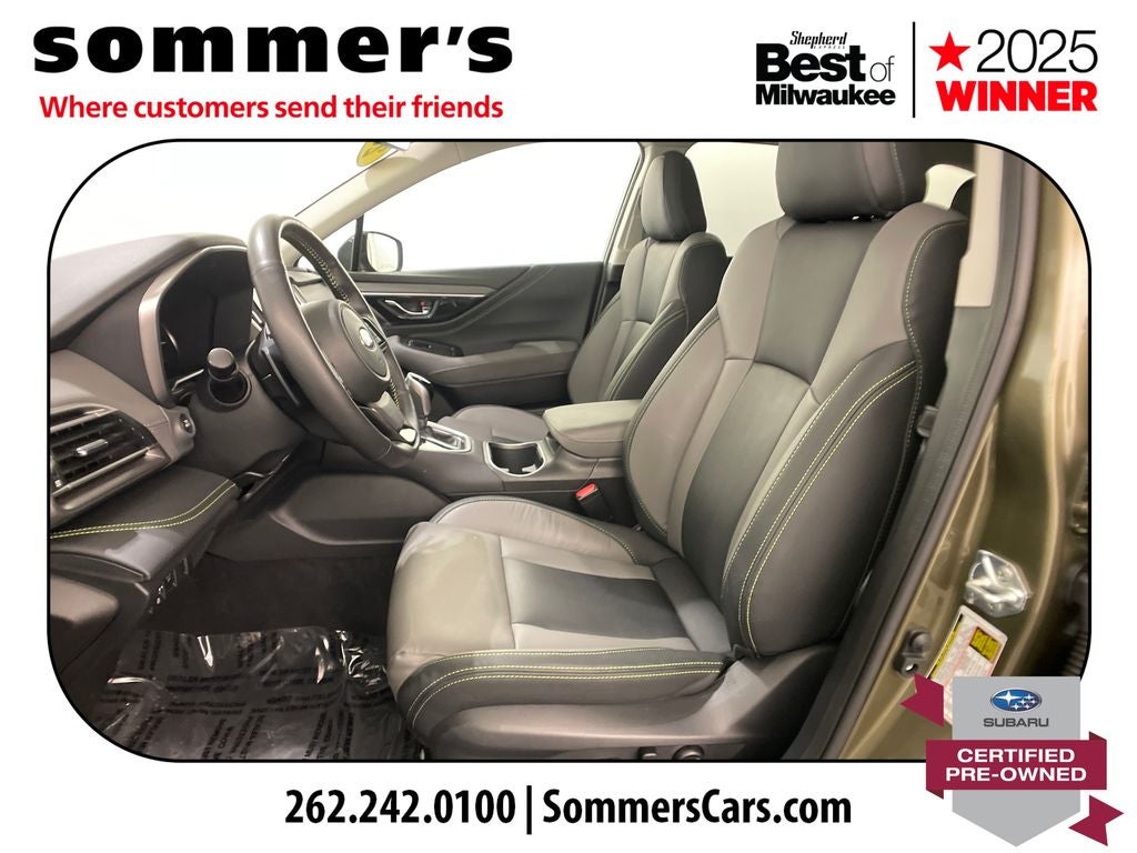 AWD | 2.5L H-4 | CVT | power moonroof | heated front seats | heated steering wheel | power liftgate | power driver seat | blind spot monitor | adaptive cruise control | lane keeping assist | Apple CarPlay | Android Auto | premium audio | backup camera | WiFi hotspot | Autumn Green Metallic | gray synthetic seats