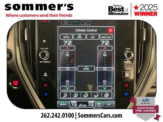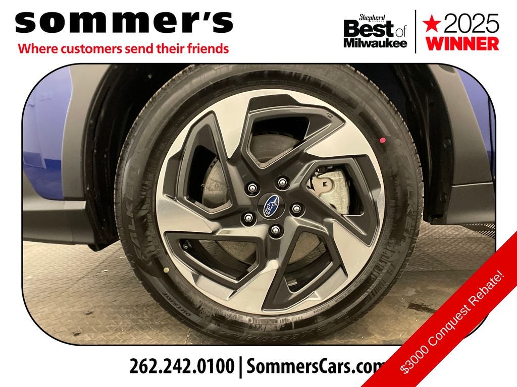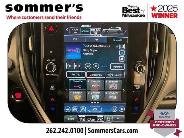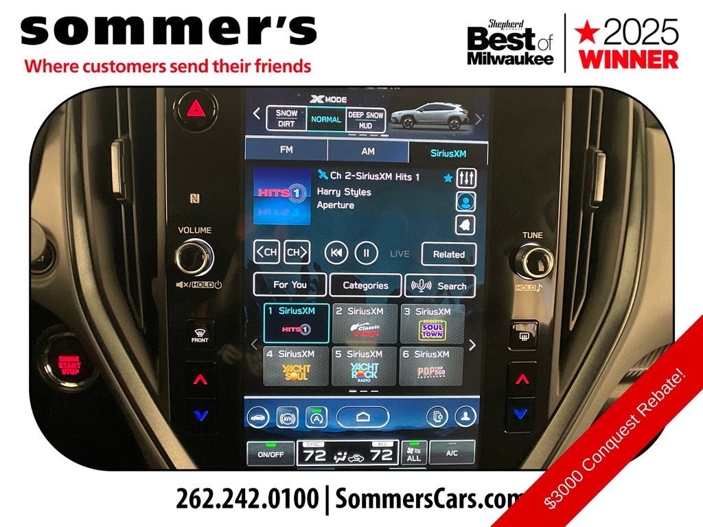 - Radio: Subaru 11.6" Multimedia Plus System -inc: AM/FM stereo, HD Radio, multi-touch gesture high resolution display screen, voice activated controls, Bluetooth® audio streaming and hands-free phone connectivity, Bluetooth® hands-free SMS text messaging connectivity, iPod control capability, smartphone integration: wired and wireless Android Auto w/full screen view and wireless Apple CarPlay w/full screen view, USB and Over The Air (OTA) audio system update, steering wheel audio system and Bluetooth® control switches, 6 speakers (2 dash panel tweeter, 2 front door and 2 rear door), illuminated 3.5mm auxiliary input jack, illuminated front USB A and C input/charge ports, connected services operation indicator, SOS emergency assistance: red SOS button and enhanced roadside assistance: blue i-button