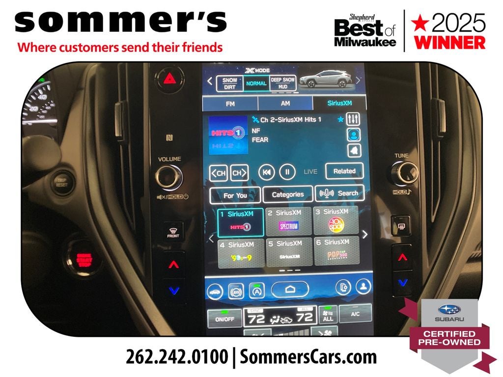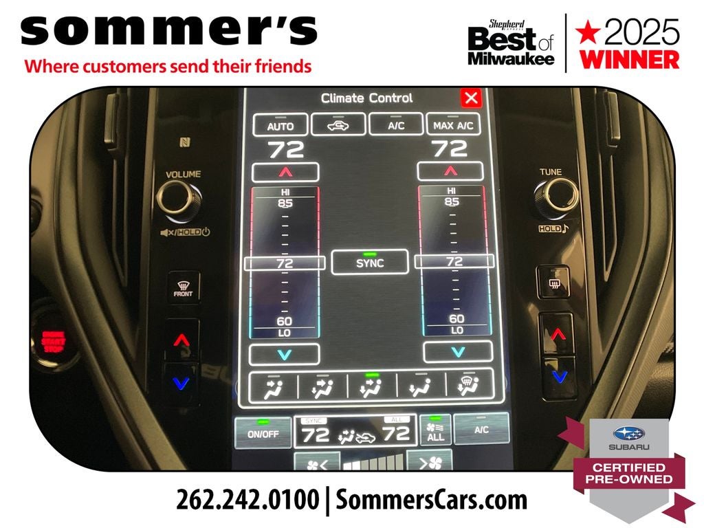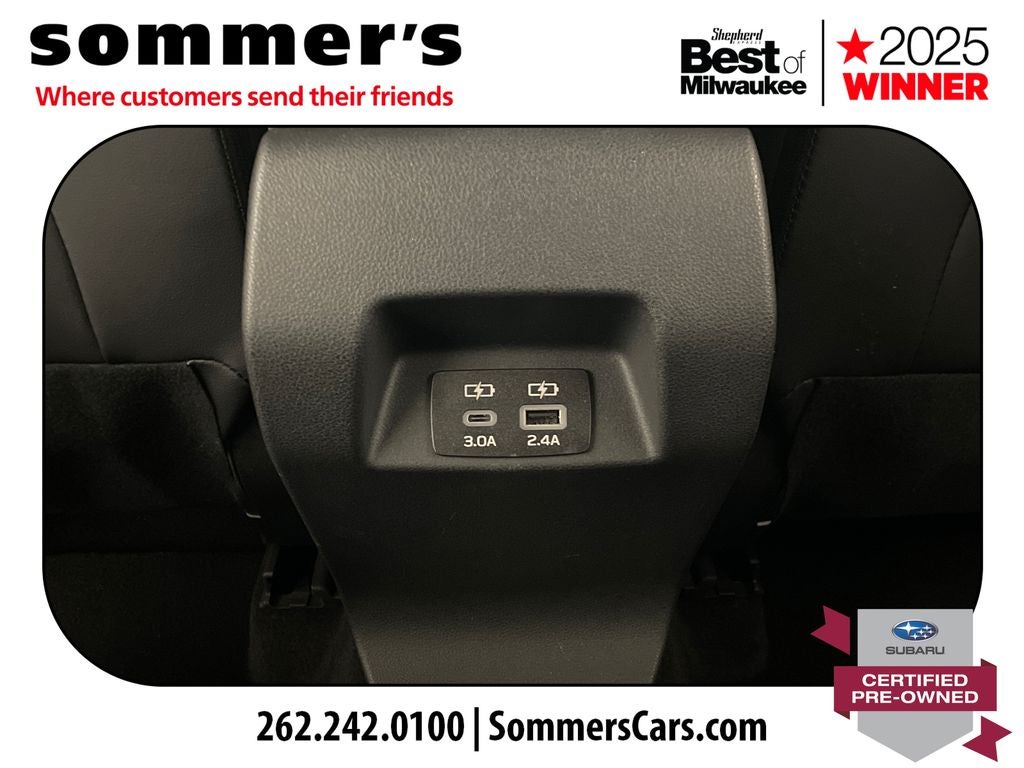 - Radio: Subaru 11.6" Multimedia Plus System -inc: AM/FM stereo, HD Radio, multi-touch gesture high resolution display screen, voice activated controls, Bluetooth® audio streaming and hands-free phone connectivity, Bluetooth® hands-free SMS text messaging connectivity, iPod control capability, smartphone integration: wired and wireless Android Auto w/full screen view and wireless Apple CarPlay w/full screen view, USB and Over The Air (OTA) audio system update, steering wheel audio system and Bluetooth® control switches, 6 speakers (2 dash panel tweeter, 2 front door and 2 rear door), illuminated 3.5mm auxiliary input jack, illuminated front USB A and C input/charge ports, connected services operation indicator, SOS emergency assistance: red SOS button and enhanced roadside assistance: blue i-button