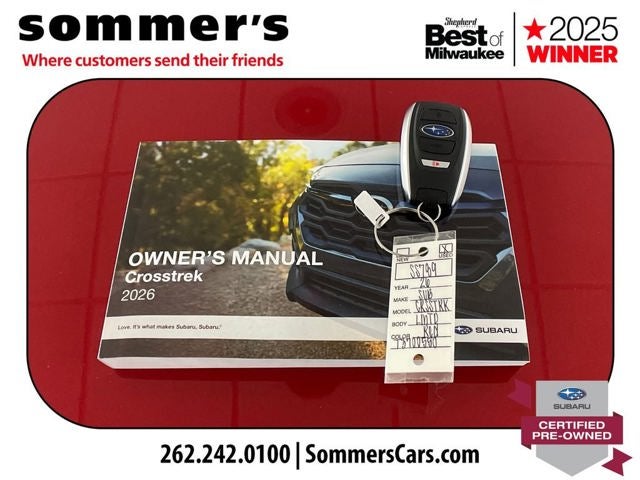 Find this 2026 Subaru Crosstrek Limited at Sommer's Automotive in Mequon, just north of Milwaukee serving Wisconsin drivers from Cedarburg, Grafton, Port Washington, Shorewood, Whitefish Bay, Fox Point, Bayside, Glendale, Wauwatosa, Brookfield, West Bend, Menomonee Falls, Germantown, Sussex, Hartford, Oconomowoc, Pewaukee, New Berlin, Franklin, Oak Creek, Racine, Kenosha, Muskego, Mukwonago, Hales Corners, Cudahy, South Milwaukee, and many more communities throughout the greater Milwaukee, Ozaukee County, Washington County, Waukesha County, and southeastern Wisconsin area.