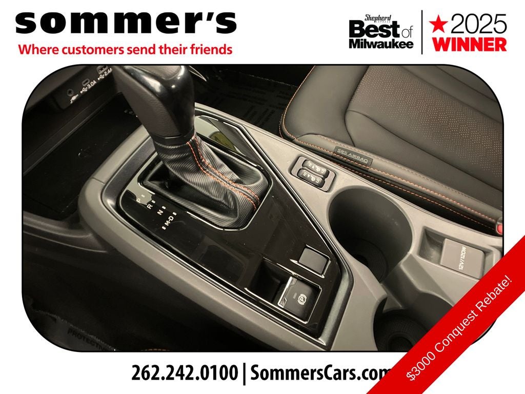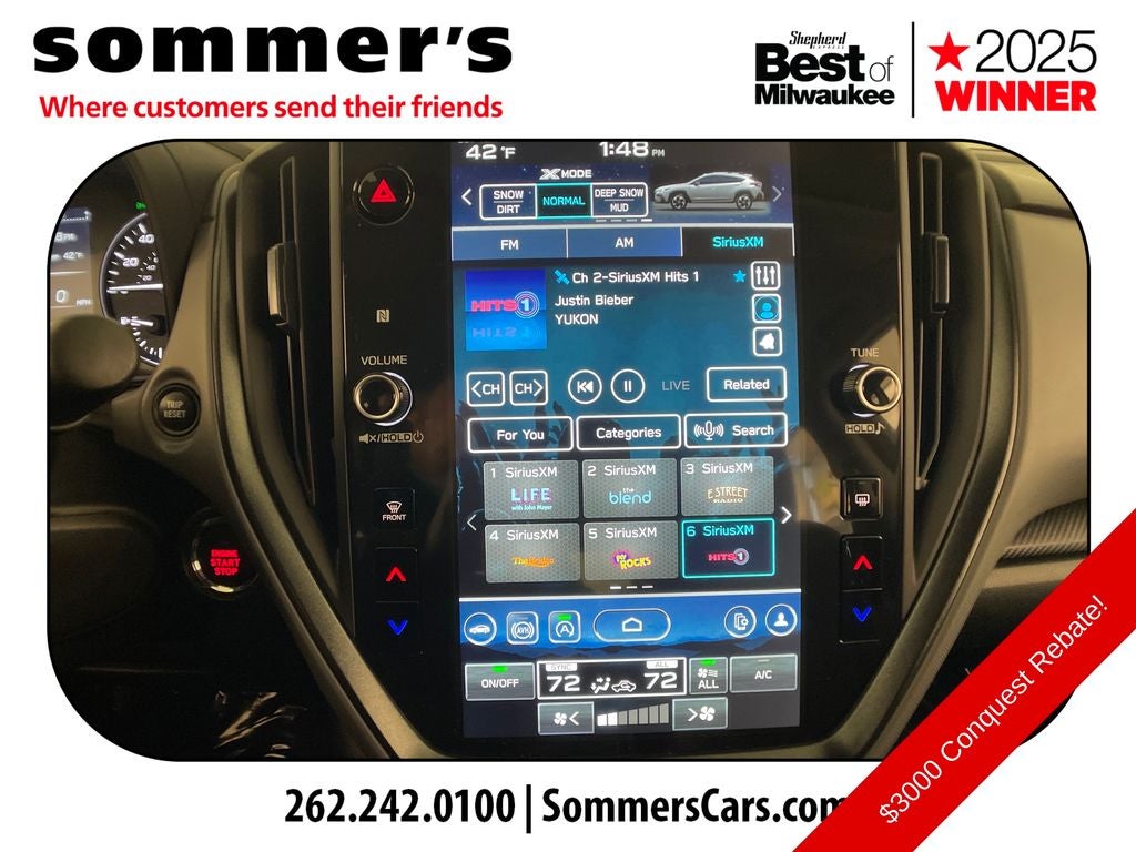 - Radio: Subaru 11.6" Multimedia Plus System -inc: AM/FM stereo, HD Radio, multi-touch gesture high resolution display screen, voice activated controls, Bluetooth® audio streaming and hands-free phone connectivity, Bluetooth® hands-free SMS text messaging connectivity, iPod control capability, smartphone integration: wired and wireless Android Auto w/full screen view and wireless Apple CarPlay w/full screen view, USB and Over The Air (OTA) audio system update, steering wheel audio system and Bluetooth® control switches, 6 speakers (2 dash panel tweeter, 2 front door and 2 rear door), illuminated 3.5mm auxiliary input jack, illuminated front USB A and C input/charge ports, connected services operation indicator, SOS emergency assistance: red SOS button and enhanced roadside assistance: blue i-button