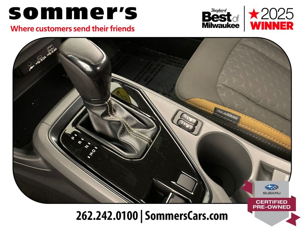 - Radio: Subaru 11.6" Multimedia Plus System -inc: AM/FM stereo, HD Radio, multi-touch gesture high resolution display screen, voice activated controls, Bluetooth® audio streaming and hands-free phone connectivity, Bluetooth® hands-free SMS text messaging connectivity, iPod control capability, smartphone integration: wired and wireless Android Auto w/full screen view and wireless Apple CarPlay w/full screen view, USB and Over The Air (OTA) audio system update, steering wheel audio system and Bluetooth® control switches, 6 speakers (2 dash panel tweeter, 2 front door and 2 rear door), illuminated 3.5mm auxiliary input jack, illuminated front USB A and C input/charge ports, connected services operation indicator, SOS emergency assistance: red SOS button and enhanced roadside assistance: blue i-button