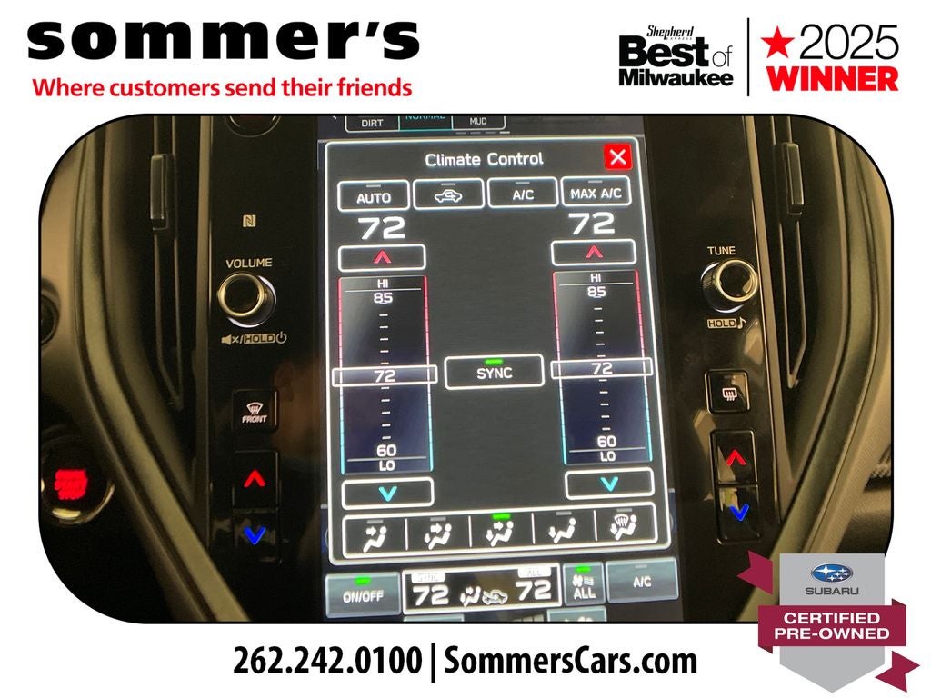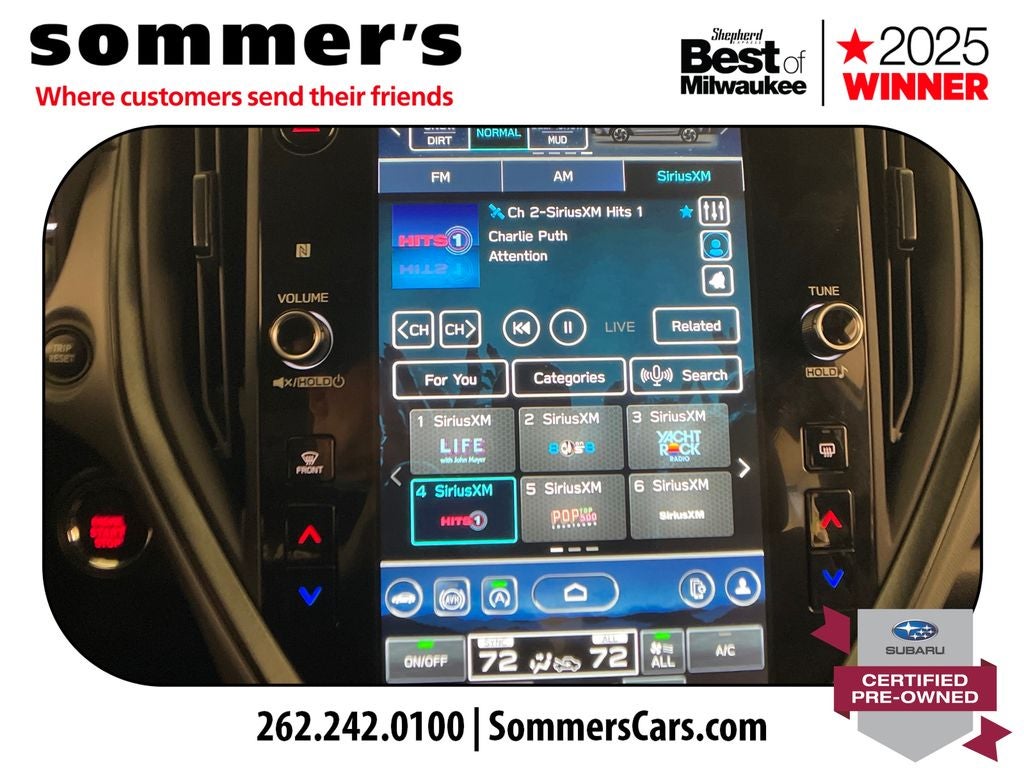 - Radio: Subaru 11.6" Multimedia Plus System -inc: AM/FM stereo, HD Radio, multi-touch gesture high resolution display screen, voice activated controls, Bluetooth® audio streaming and hands-free phone connectivity, Bluetooth® hands-free SMS text messaging connectivity, iPod control capability, smartphone integration: wired and wireless Android Auto w/full screen view and wireless Apple CarPlay w/full screen view, USB and Over The Air (OTA) audio system update, steering wheel audio system and Bluetooth® control switches, 6 speakers (2 dash panel tweeter, 2 front door and 2 rear door), illuminated 3.5mm auxiliary input jack, illuminated front USB A and C input/charge ports, connected services operation indicator, SOS emergency assistance: red SOS button and enhanced roadside assistance: blue i-button